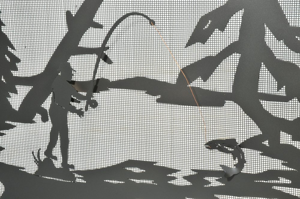 Fishing enthusiasts will cast their lines in delight for this striking fireplace screen design. A Lake Trout is depicted leaping out of the water as an angler is reeling in. The stunning fireplace screen design features decorative accents and hardware in Wrought Iron. Domestically Produced in our 180;000 square foot manufacturing facility in Yorkville; New York. Customize firescreen designs; metal finishes and sizes to suit your taste.
