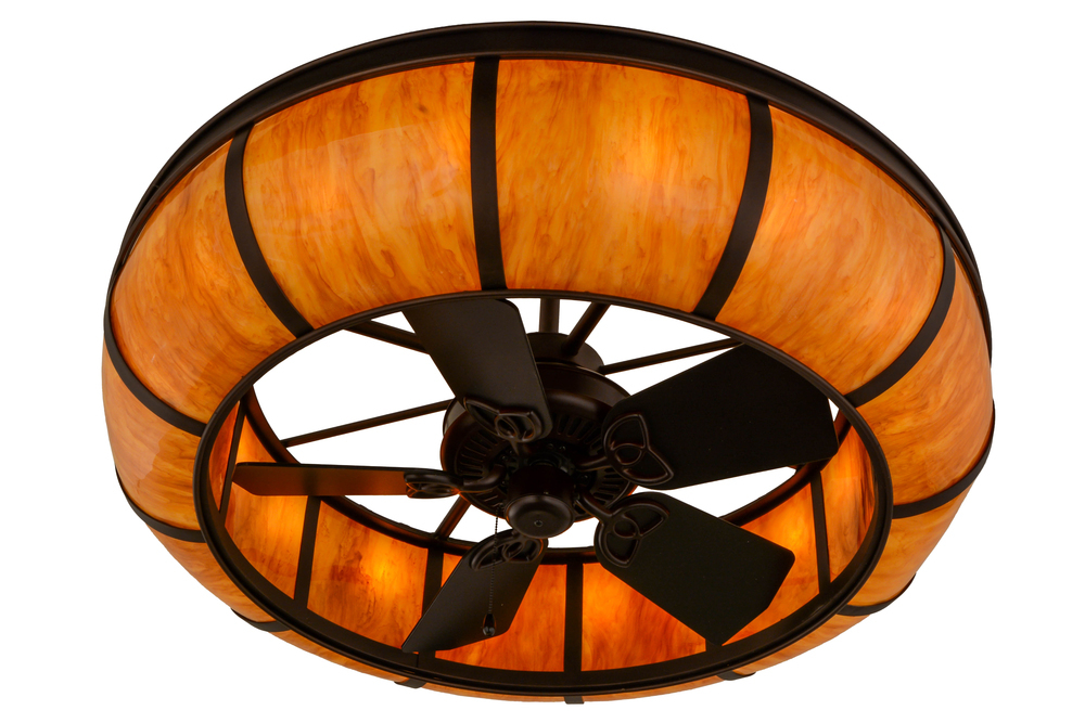 This fan-integrated; custom lighting fixture features stunning Natural Textrene complemented with a Faux Maplewood bottom diffuser and enhanced with a Mahogany Bronze finish. Multiple layers of light for different moods and tasks including Integral LED inner lights to deliver beautiful ambient illumination and bring out the beauty of the fabric; and 8 downlights to provide functional lighting below. In summer; the fan pushes down a windchill that circulates to keep the space cool and comfortable. In winter; the fan is reversed to pull the room air towards the ceiling and force the warm air back into your space. The Smythe Craftsman Chandel-Air isincluded in our American-made; American-designed handcrafted Chandel-Air Collection. Manufactured in Yorkville; NY. UL & cUL listed for dry and damp locations.