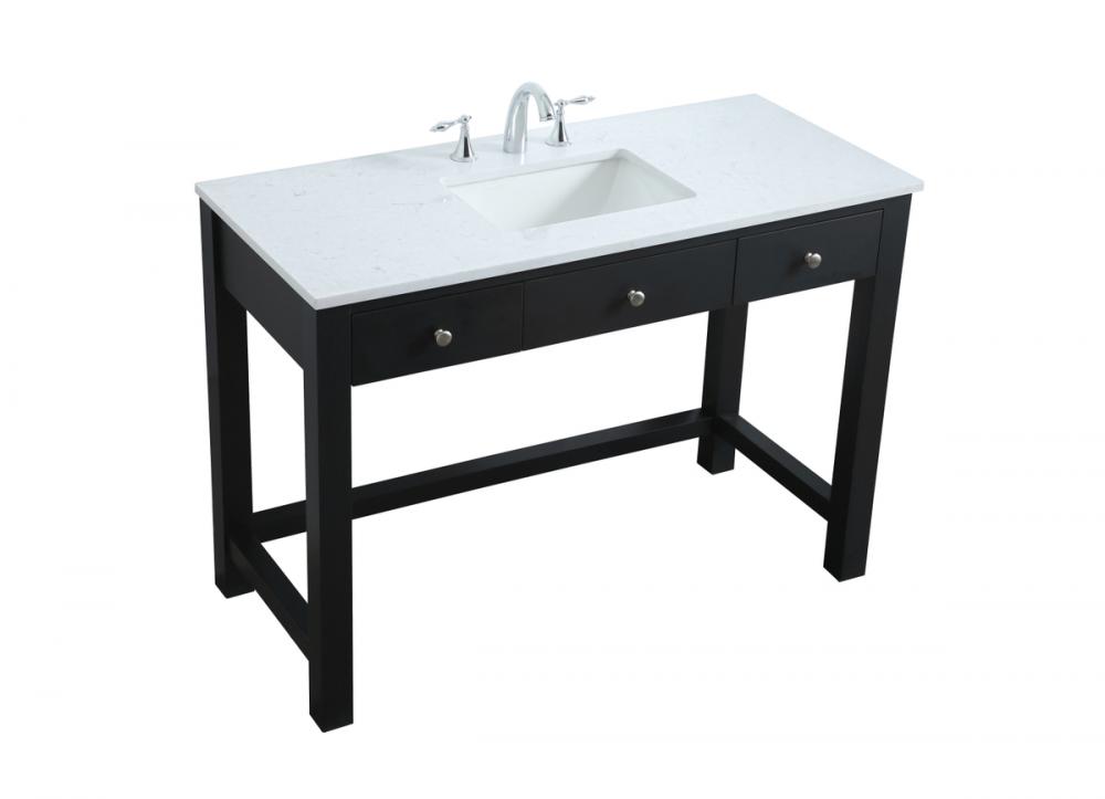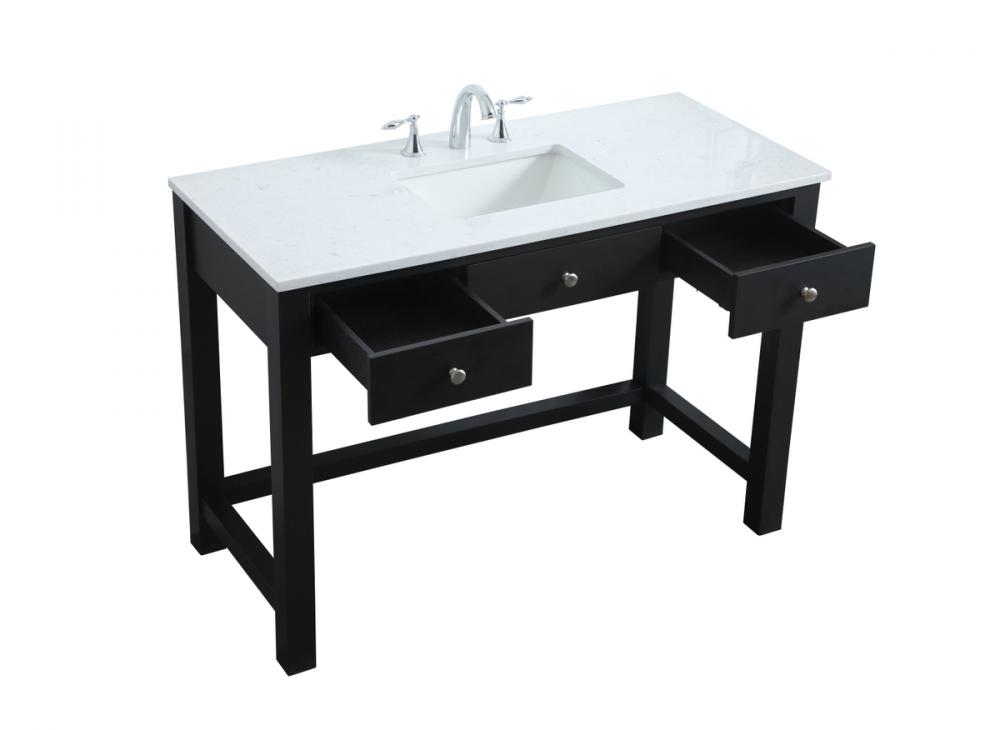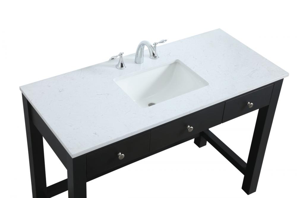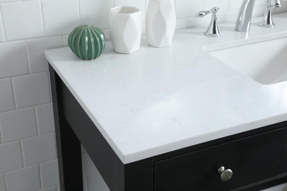 The vanity boasts a luxurious Calacatta look engineered marble stone top, combining timeless beauty with durability. This premium material adds a touch of opulence to your bathroom while combating to the rigors of daily use.