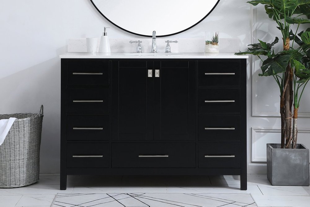 48 inch Single Bathroom Vanity in Black with Backsplash