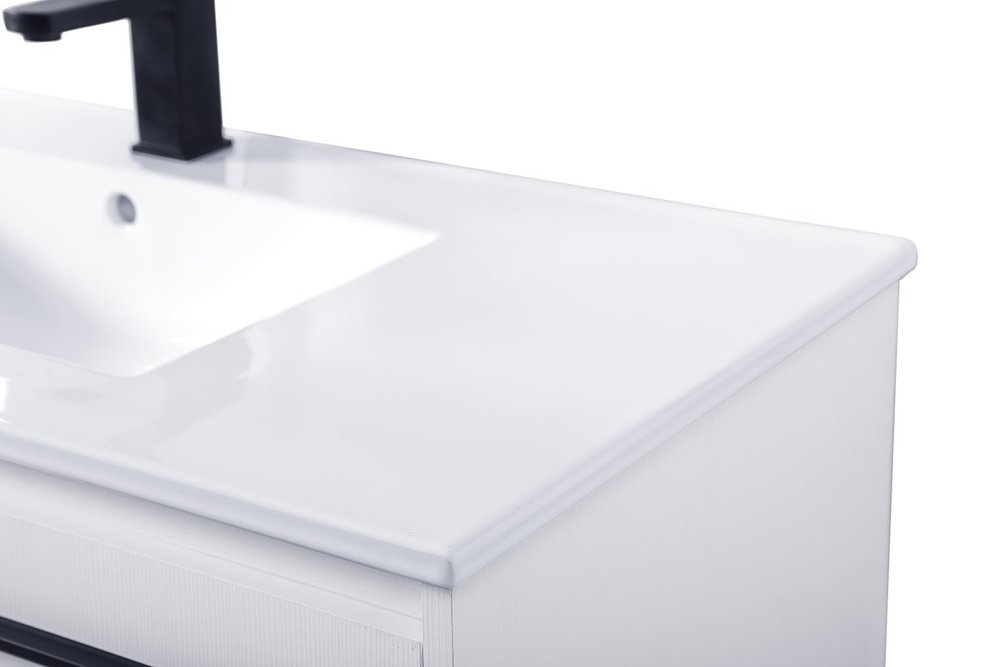 Live in modern comfort with this 48" concrete grey finish vanity. Dressed in a concrete grey and sleek black metal hardware, its contemporary style will have your bathroom or powder room elevated in industrial sophistication. The open shelf at the base and 3 doors reveal ample storage space for your bathroom essentials and miscellany. Clean lines create its own visual interest, adding trendy looks to your already chic room.