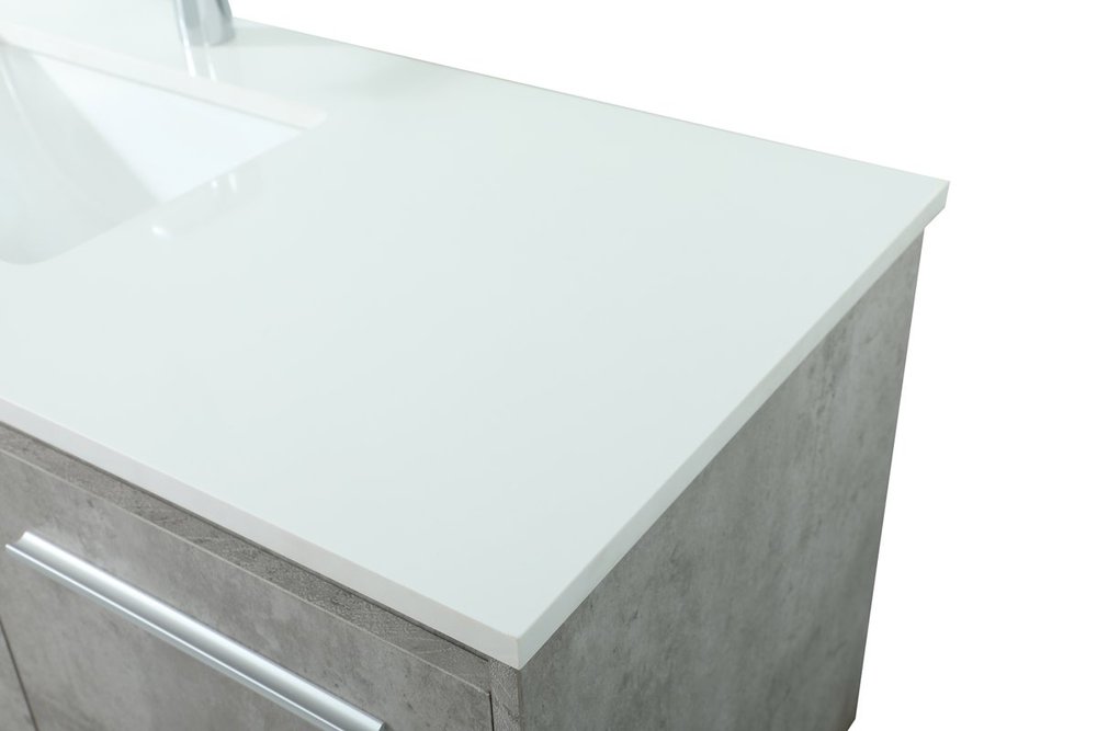 Save space and make your bathroom appear bigger with this floating vanity that comes in several finishes. Its minimal design will have you in awe, while its clean lines will leave your room feeling fresh and uncluttered. The Single cabinet opens with soft closing doors that allows for storage to place extra towels or various other essentials. Its low maintenance and durable engineered marble top will surely last through many washes.