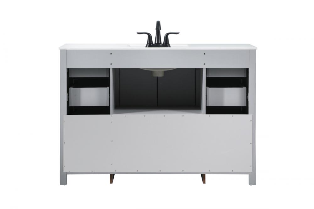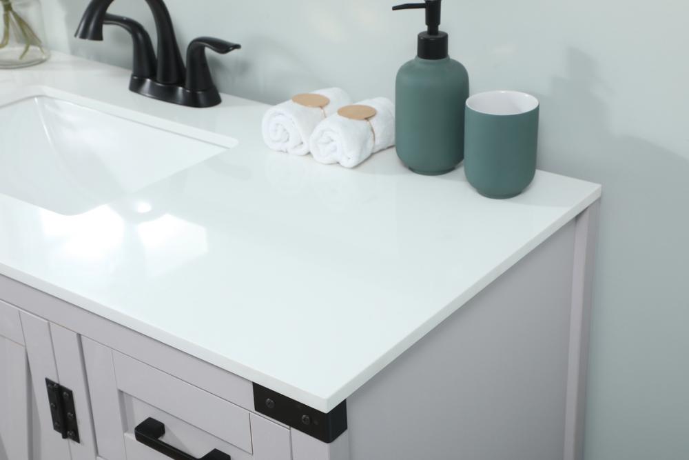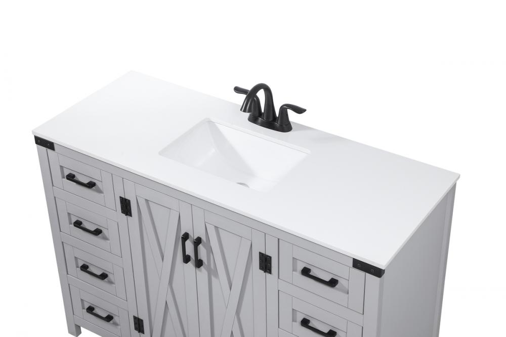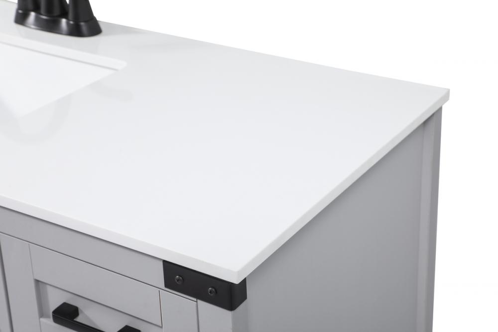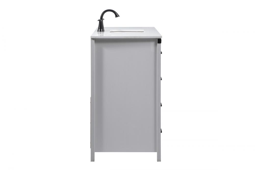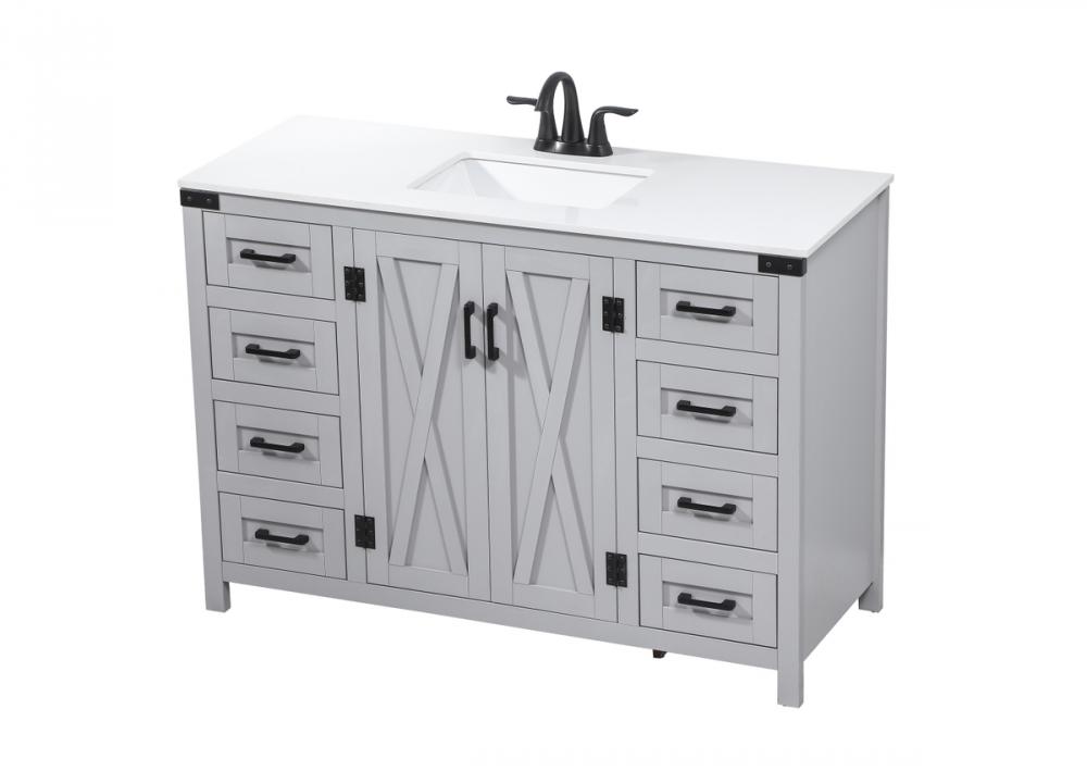 Reminiscent of barn doors, the two door cabinet and eight drawers adds both stylistic charm and function with its plethora of storage options for all your bathroom essentials. Whether for your bathroom or the guests', everyone will marvel at its classic look for traditional and farmhouse aesthetics. A slab of engineered marble rounds out the piece up top, as well as the porcelain under mount sink and predrilled faucet holes. This vanity arrives fully assembled.