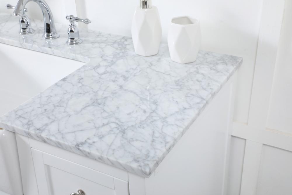 Comes with an apron porcelain sink and durable marble stone top in carrara white finish
