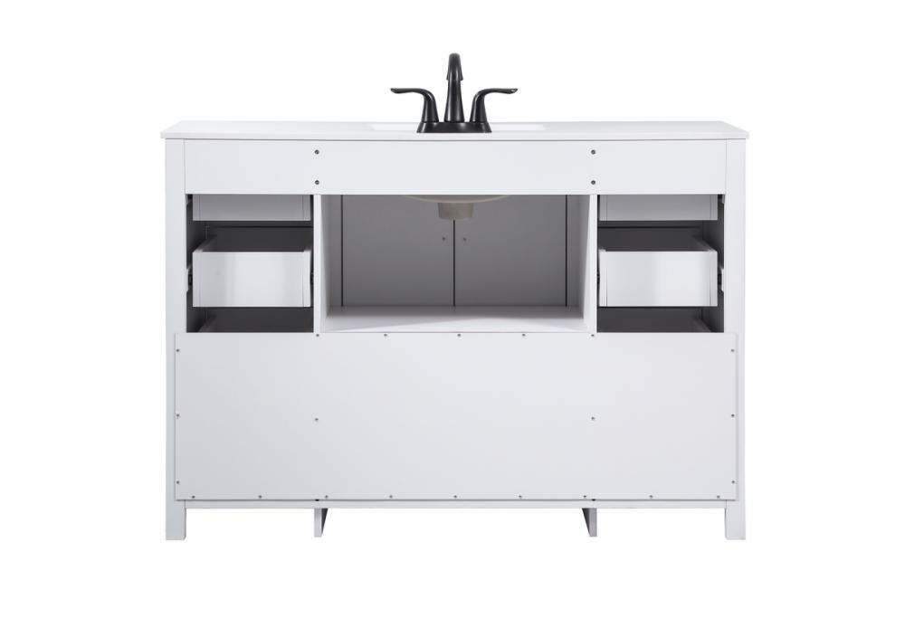 Crafted with durable engineered marble top in ivory white finish