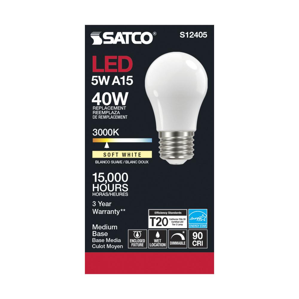 The most common, useful lamps on the market are now suitable for use nationwide with their 90 CRI T20 CEC rating. Satco's S12405 A15, 3000K, 5-watt soft white lamp incorporates all the latest LED technologies for superior lumen output, efficiency and l