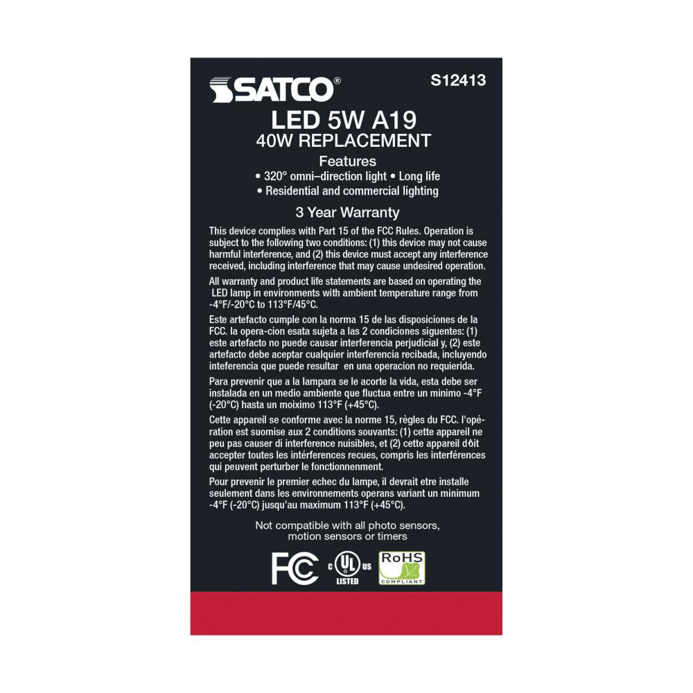 The most common, useful lamps on the market are now suitable for use nationwide with their 90 CRI T20 CEC rating. Satco's S12413 A19, 3000K, 5-watt soft white lamp incorporates all the latest LED technologies for superior lumen output, efficiency and l