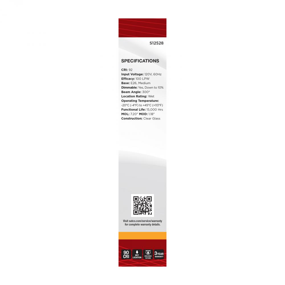 Satco's S12528 5-watt, LED lamp is traditional, yet contemporary with its vintage style and energy saving LED technology. Elegantly illuminate any room in the house with this dimmable, clear bulb. Sophisticated and modern, this lamp delivers 15,000 hou