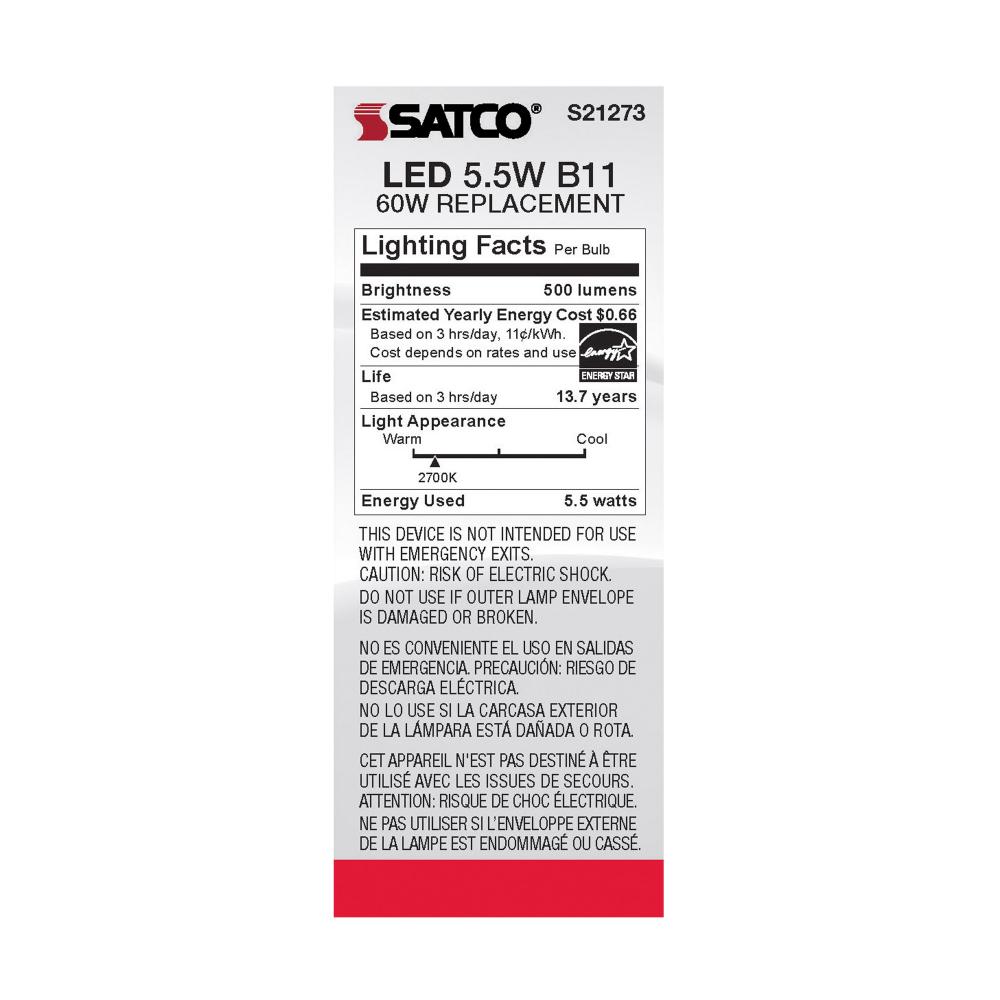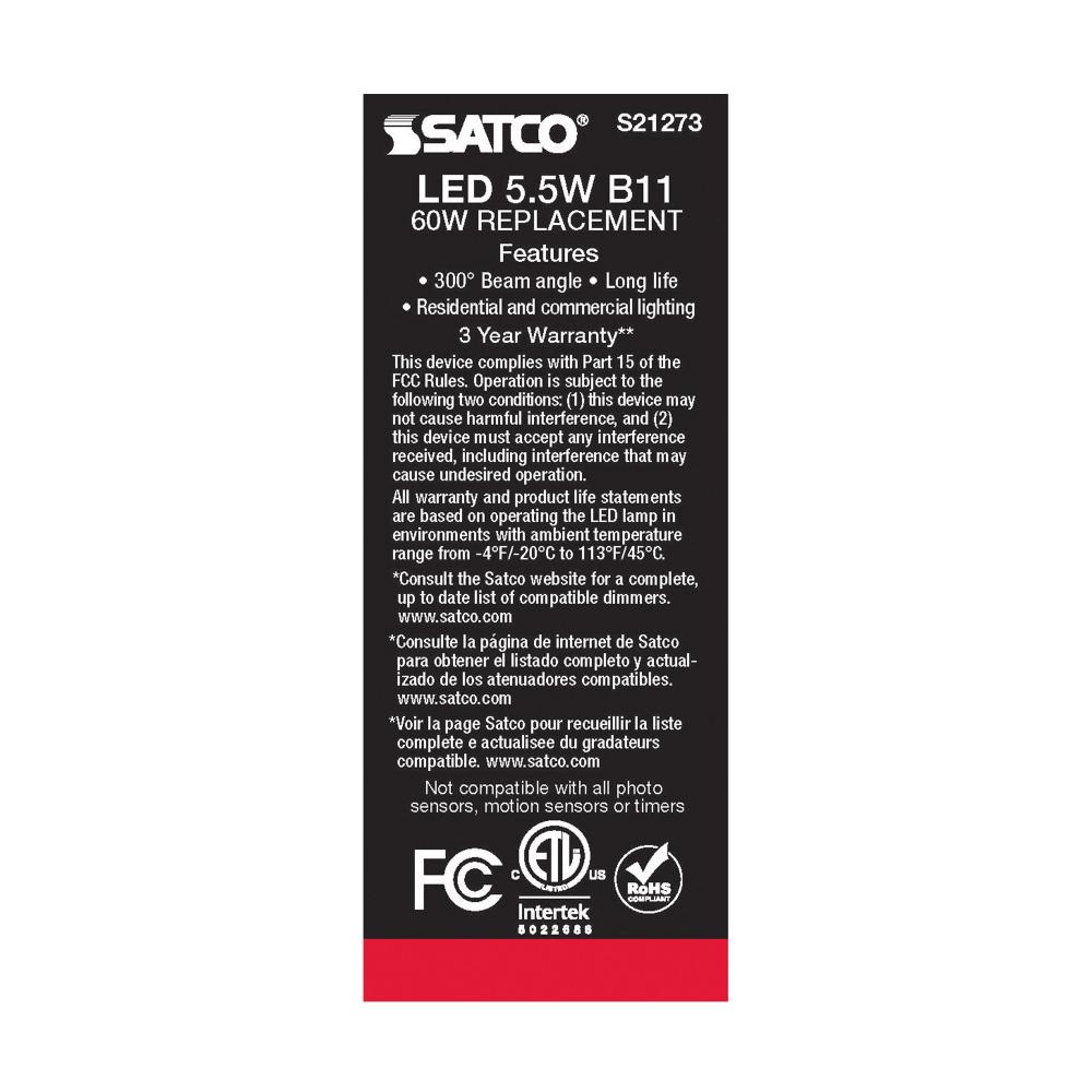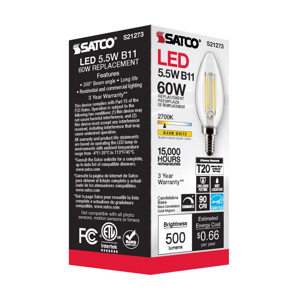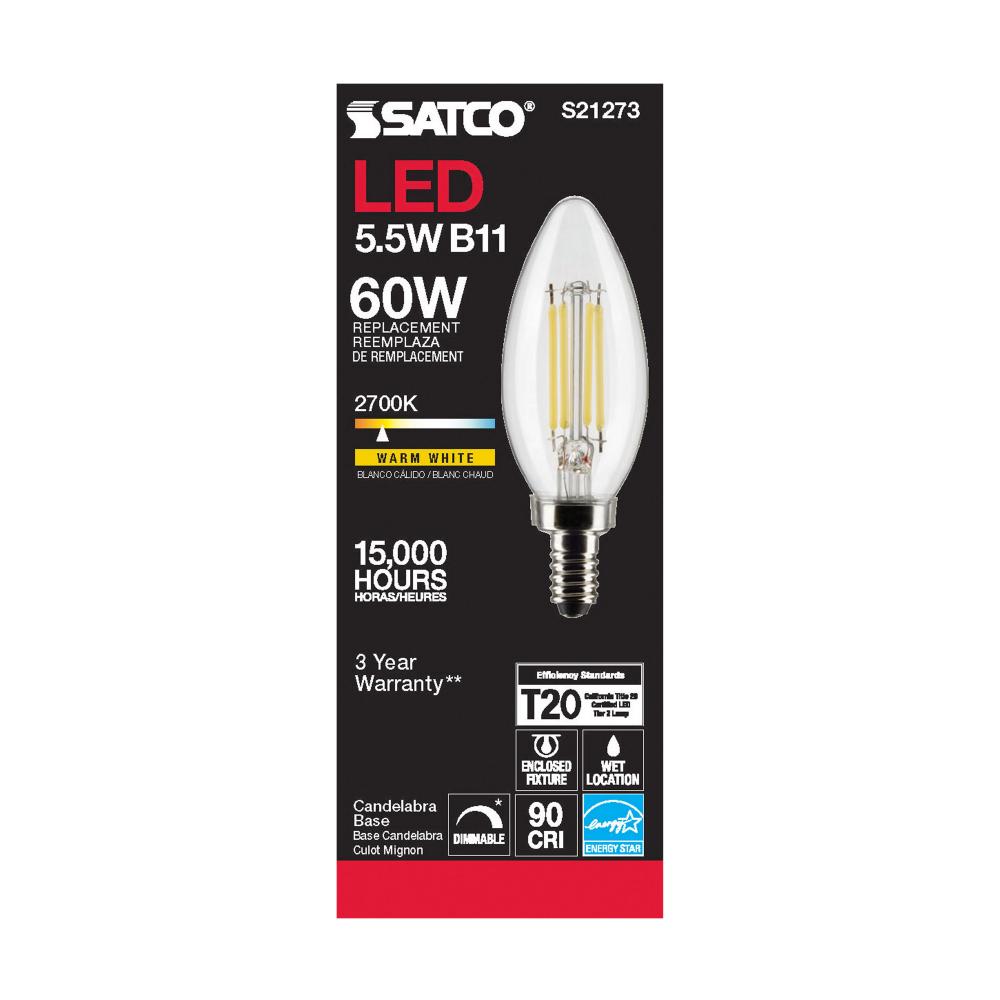 Satco's S21273 5.5-watt LED lamp is traditional, yet contemporary with its vintage style and energy saving LED technology. Elegantly illuminate any room in the house with this dimmable, clear bulb. Sophisticated and modern, this lamp delivers 15,000 ho