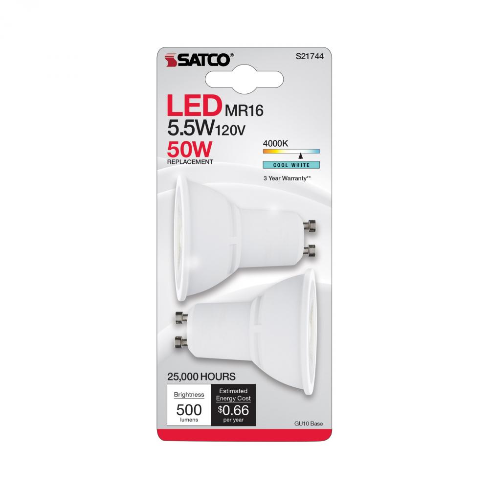 SATCO NUVO's LED Mini-Reflectors are a direct replacement for outdated Halogen lamps. SKU S21744 is a 5.5-watt, 4000K, MR16 lamp with a GU10 base that will easily fit into existing fixtures to upgrade down lighting, accent lighting and pendant lighting