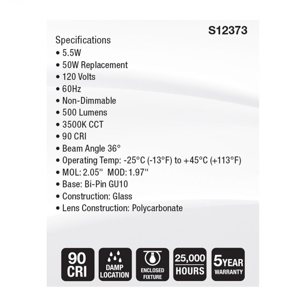 SATCO S12373 MR16 lamps provide high color accuracy with a 90 CRI and are dimmable for customizable lighting. These lamps are also damp location rated, and suitable for use in enclosed fixtures. Perfect for a variety of residential and commercial applicati