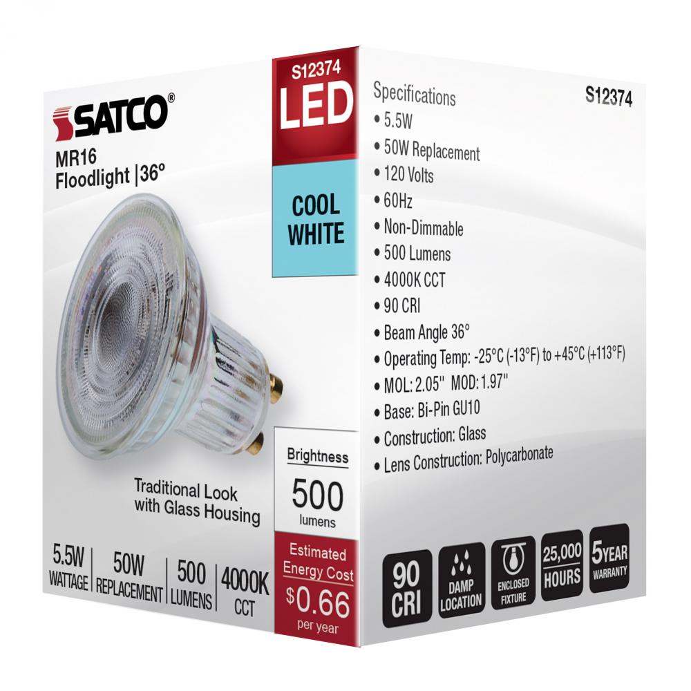 SATCO MR16 lamps are available with GU5.3 and GU10 bases, for versatile lighting solutions in 12V and 120V applications. These lamps are offered in a wide range of color temperatures, from a warm 2700K, to a bright 6500K, and provide high color accuracy wi