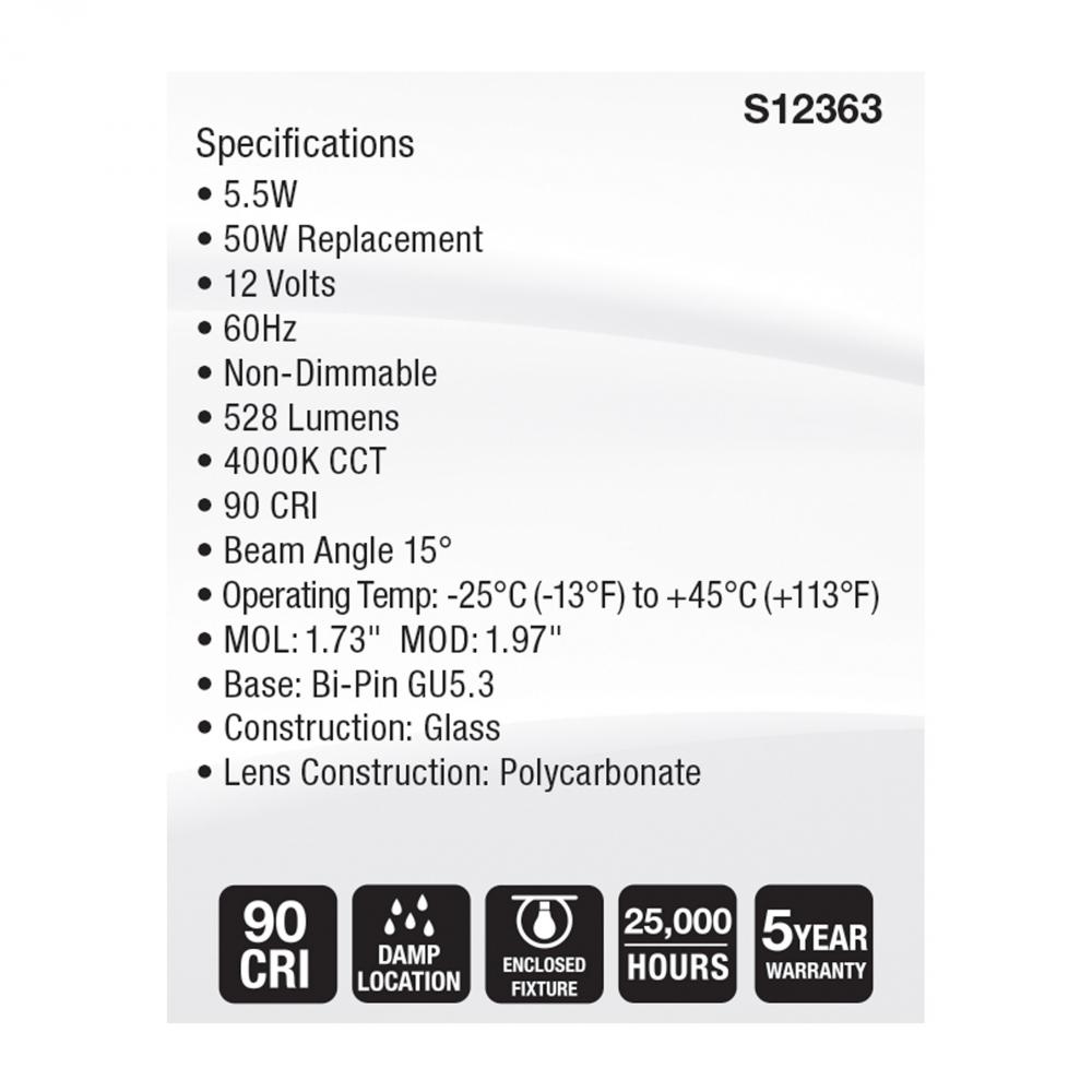5.5 Watt MR16 LED Spotlight; 4000K CCT; GU5.3 Base; 12 Volt