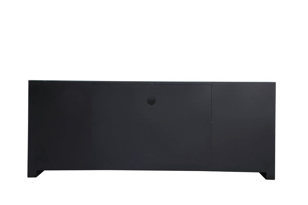 This mirror paneled tv stand is the perfect complement to your entertainment spaces. You can enjoy watching endless movies, host premier nights, or play video games until the stars are sparkling just as bright as the silver crystals that embellish the panels within the X-shaped details of the cabinet doors, which opens to reveal a storage area that is the perfect place to put away board games and various trinkets. Video game consoles and players can find a cozy spot in the middle storage area, or you can place books to read for when the tv is off. The perfect home for your tv, movies, and board games, this stand combines sparkling beauty with function.