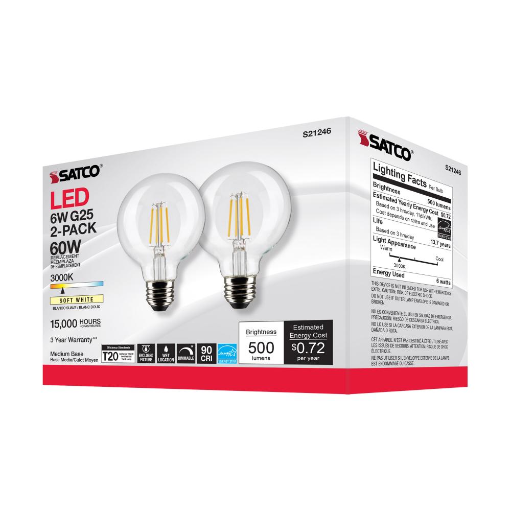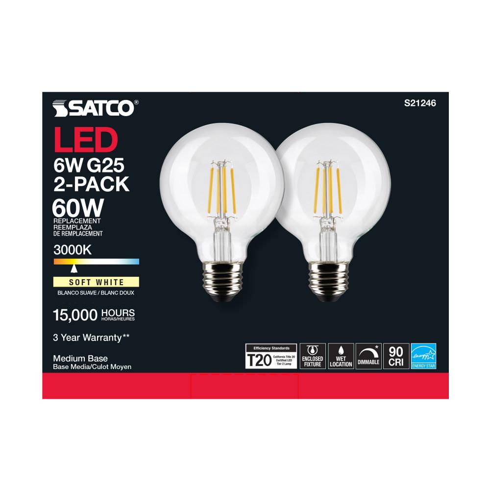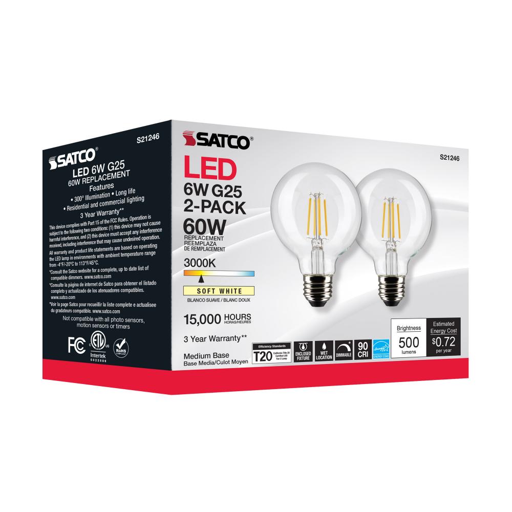 Satco's S21246 6-watt LED lamp is traditional, yet contemporary with its vintage style and energy saving LED technology. Elegantly illuminate any room in the house with this dimmable, globe shaped bulb. Sophisticated and modern, this lamp delivers 15,0