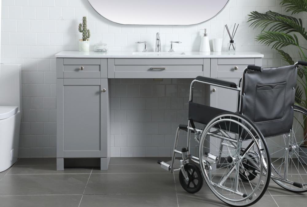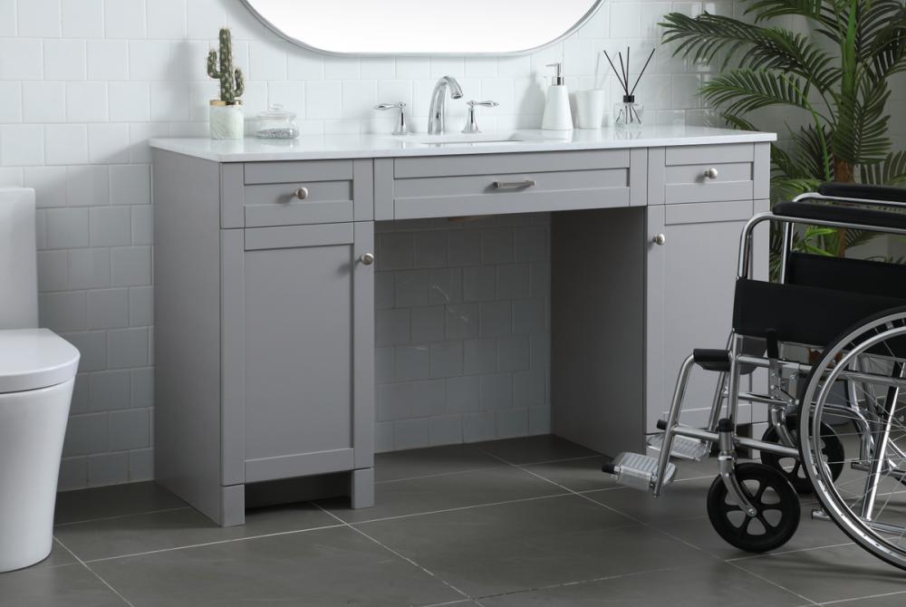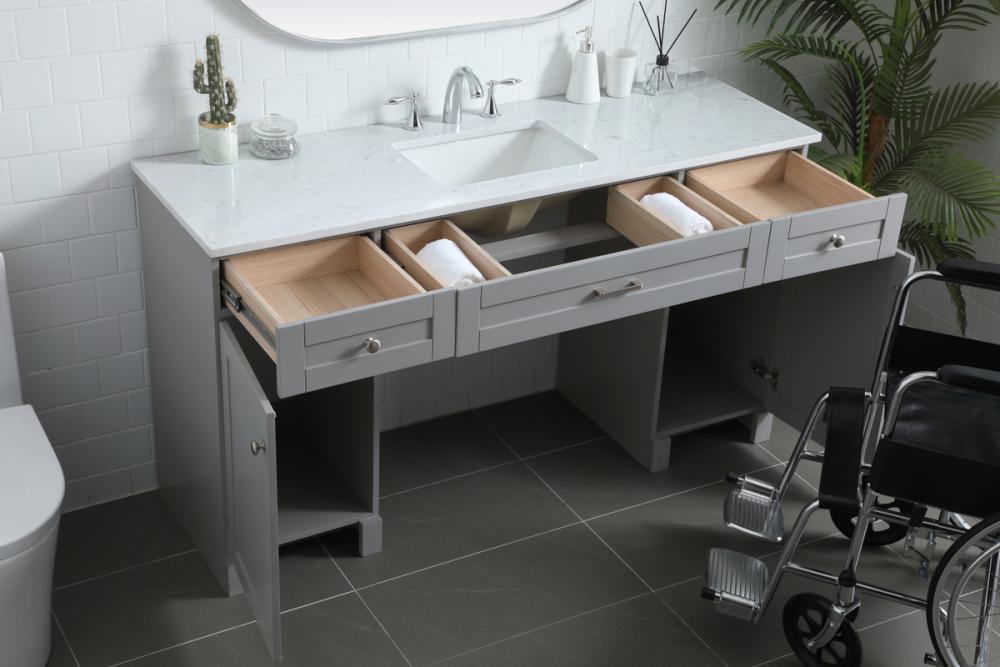 Step into a bathroom oasis that redefines inclusivity and elegance with our Handicap ADA Compliant Bathroom Vanity. Designed with careful consideration for accessibility, this vanity accommodates wheelchair access effortlessly. The undermount porcelain sink, set upon a durable Calacatta look engineered marble stone top, brings an air of opulence to your space. Customize your vanity with the versatile predrilled countertops, allowing you to choose faucets that suit your taste. The soft closing drawers ensure a serene and peaceful environment, complemented by the fully assembled and ready-to-use design for instant gratification. The optimal knee clearance and discreetly placed overflow hole in the porcelain sink further enhance the functionality of this vanity. With three functional drawers, two cabinets, and stainless steel knobs, organization and aesthetics seamlessly intertwine. Choose our Handicap ADA Compliant Bathroom Vanity for a space that embodies accessibility without compromising on luxury. Redefine your daily rituals with a vanity that caters to everyone's needs while adding a touch of sophistication to your bathroom sanctuary.