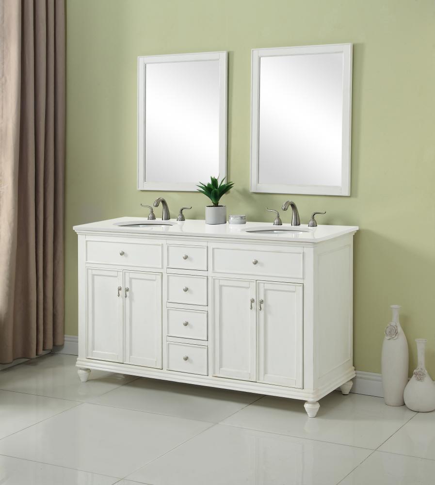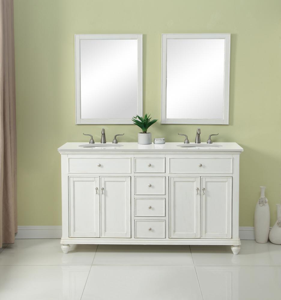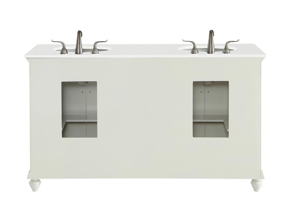 60 inch Double Bathroom vanity in Antique White with ivory white engineered marble