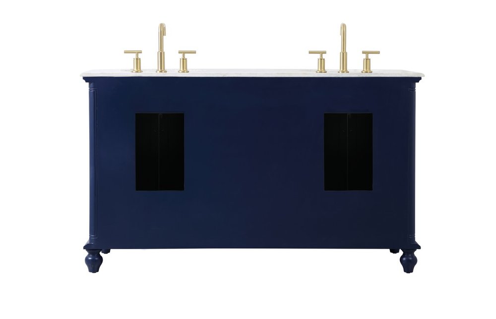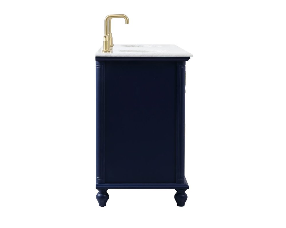 The Rhodes collection compact vanity will add lovely sophistication and complement any small bathroom or powder room, while utilizing its charm and function to provide you with ample storage spaces. Metal round knobs gently adorn the shuttered cabinet door and drawer at the base, allowing for you to store away your bathroom essentials. The Carrara white marble countertop, porcelain undermount sink, dignified subtle engravings on the side edges, and rounded legs all come together to create contemporary beauty. Work with your space, and design a beautiful room, no matter the size.