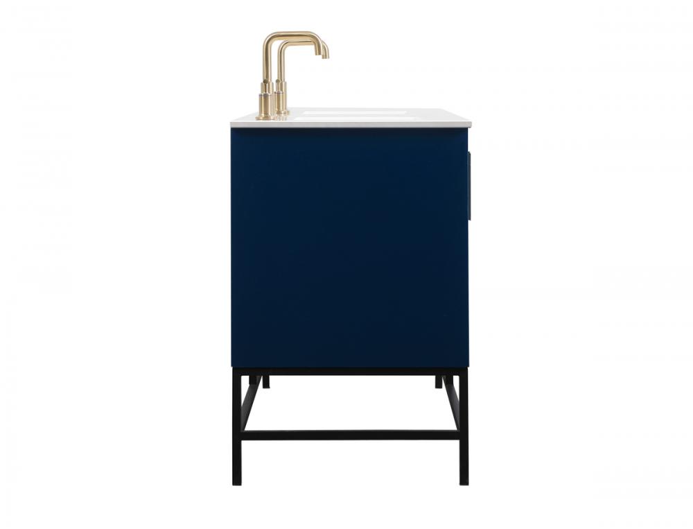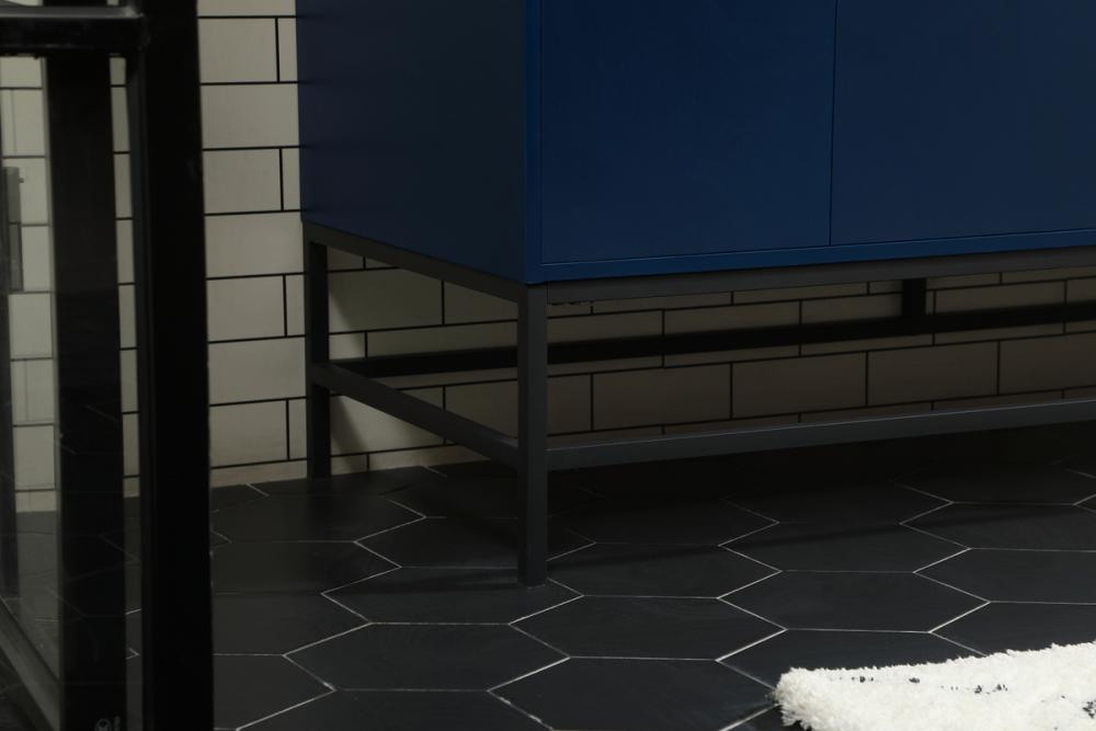 This vanity is a sleek-looking piece of bathroom furniture that is easy to incorporate into your design scheme. The cabinet features a smooth door panel with an oversized steel handle and soft close hinges provide ample room for accessories. Constructed of engineered wood, the powder-coated metal rod legs are an urban industrial look that we love. Minor assembly of the metal legs needed to get this vanity up and running.