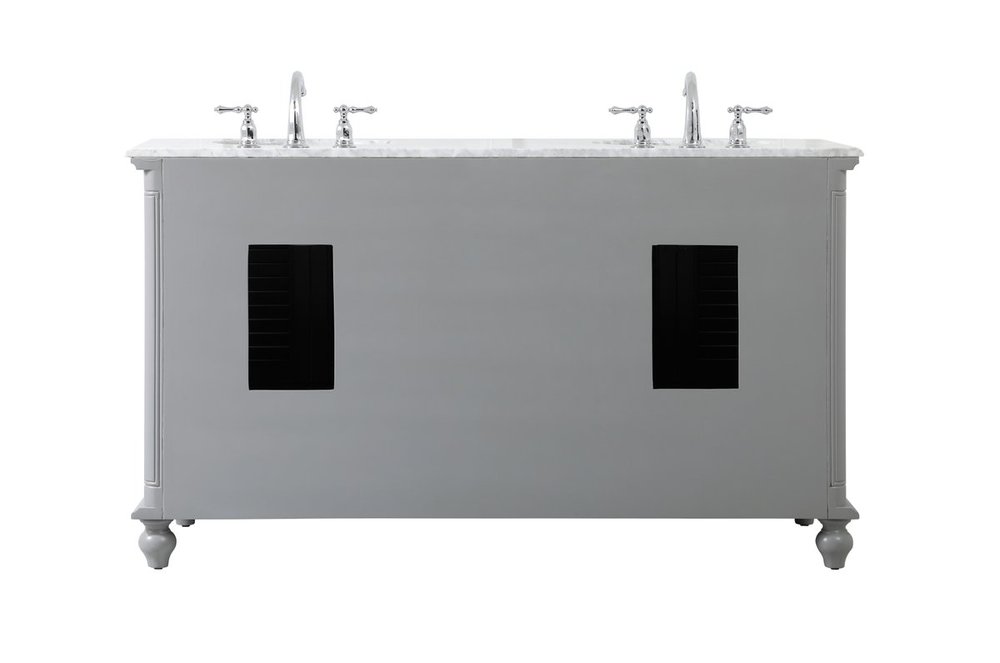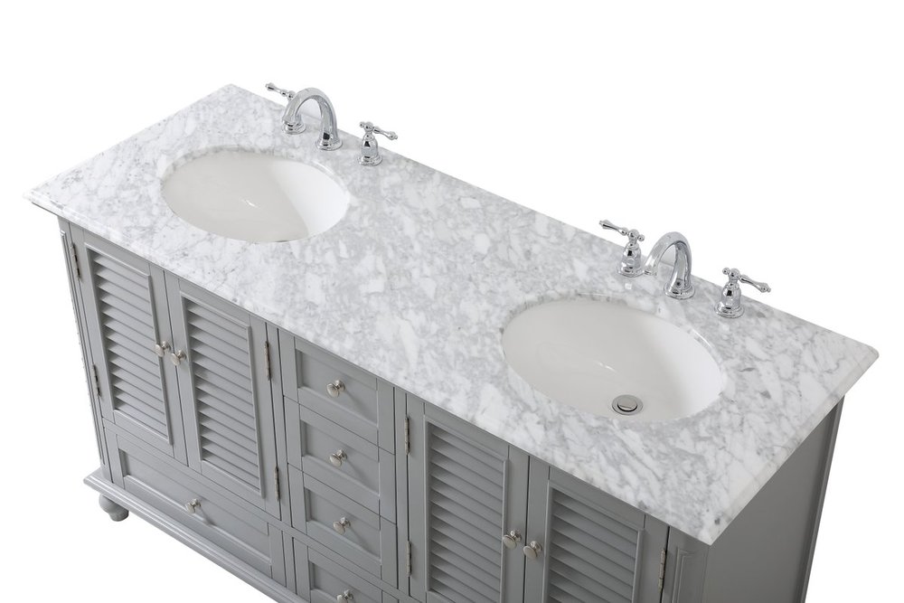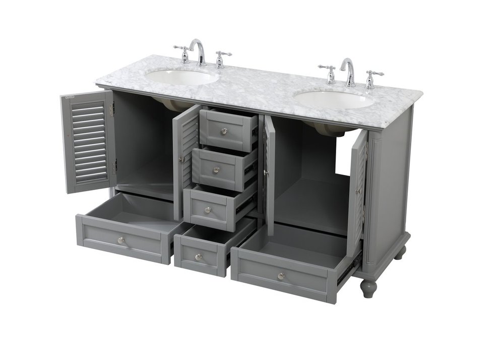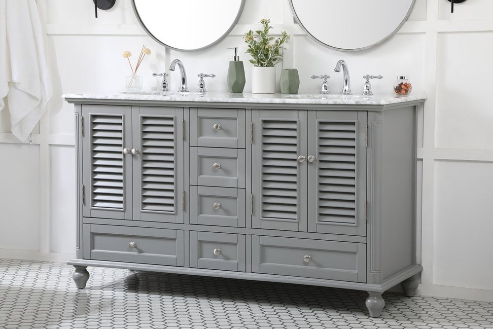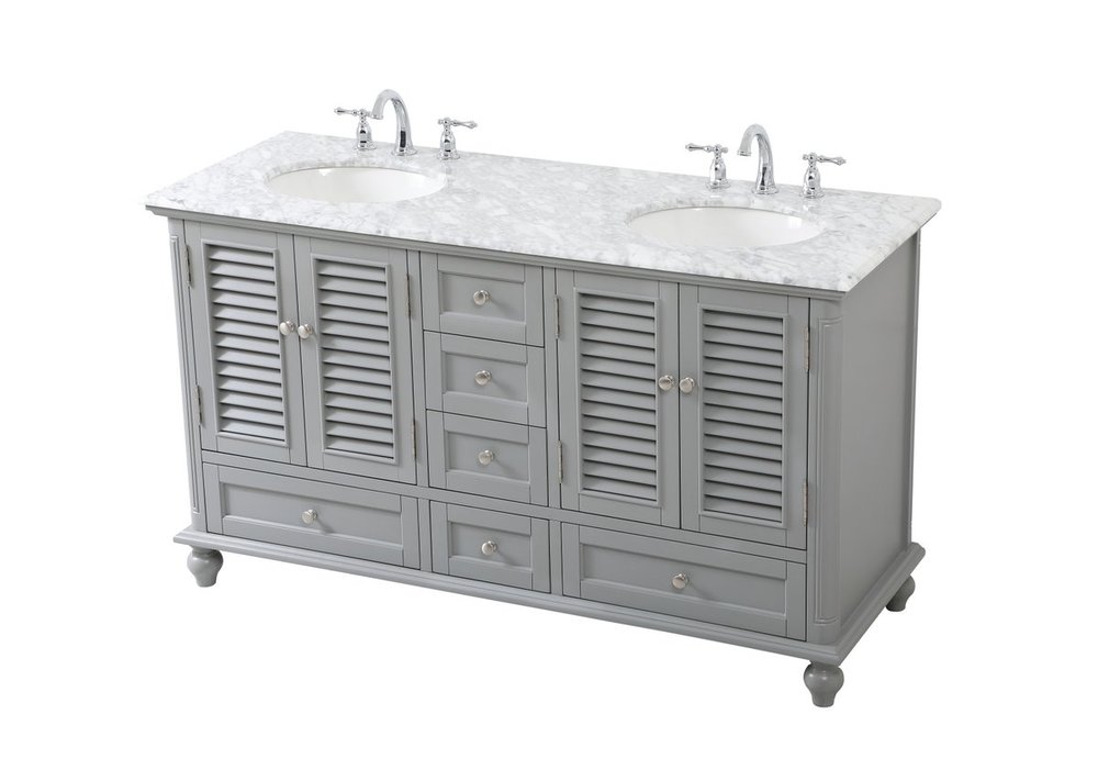 The Rhodes collection compact vanity will add lovely sophistication and complement any small bathroom or powder room, while utilizing its charm and function to provide you with ample storage spaces. Metal round knobs gently adorn the shuttered cabinet door and drawer at the base, allowing for you to store away your bathroom essentials. The Carrara white marble countertop, porcelain undermount sink, dignified subtle engravings on the side edges, and rounded legs all come together to create contemporary beauty. Work with your space, and design a beautiful room, no matter the size.