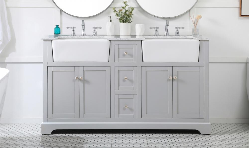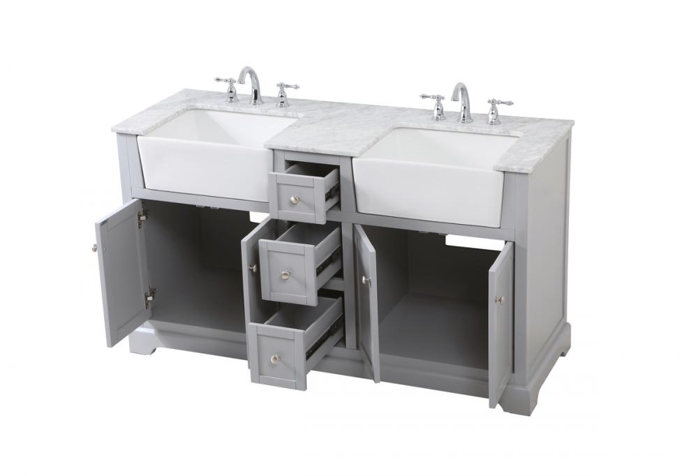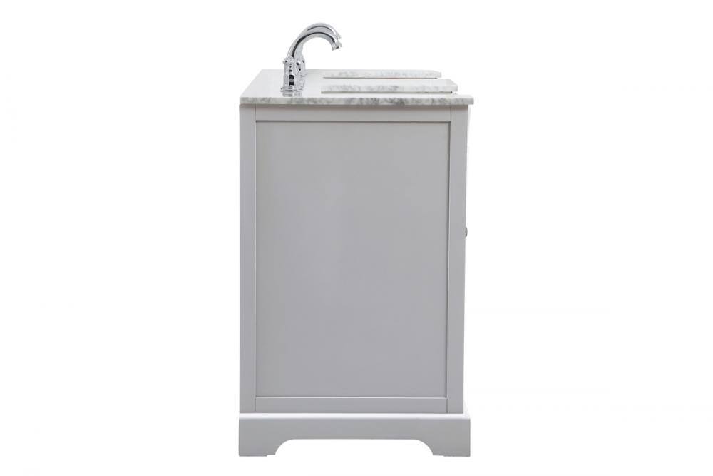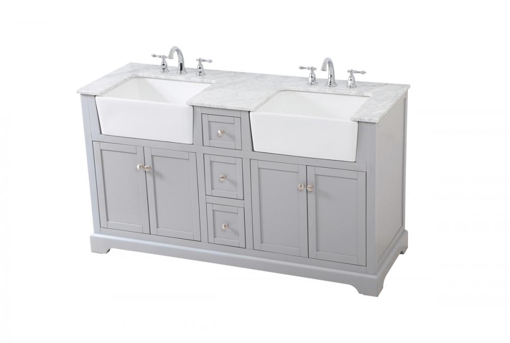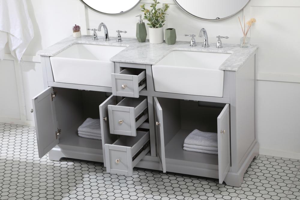 Make the most of your space with this farmhouse style bathroom vanity. Complements well with its beautiful finish, carrara white marble countertop, and the contemporary slender handle bar that sits on the functional drawers with soft closing mechanism, allowing you to store an assortment of bathroom essentials. The lower shelf makes it the perfect space to hold new towels for your guests. This stylish vanity ensures both form and function in your bathroom for you and your guests.