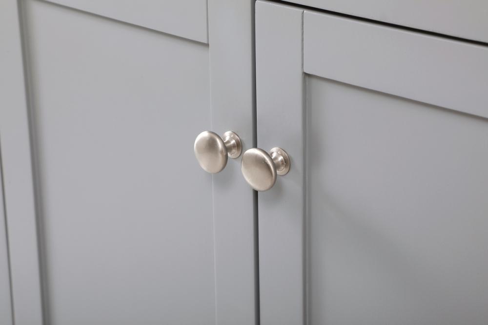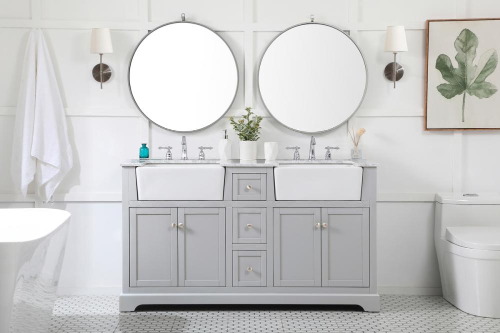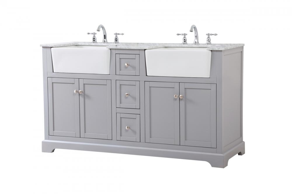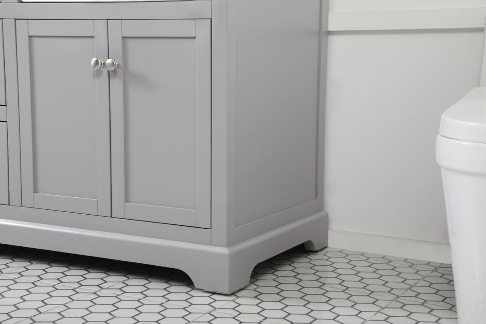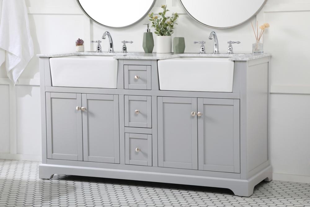Make the most of your space with this farmhouse style bathroom vanity. Complements well with its beautiful finish, carrara white marble countertop, and the contemporary slender handle bar that sits on the functional drawers with soft closing mechanism, allowing you to store an assortment of bathroom essentials. The lower shelf makes it the perfect space to hold new towels for your guests. This stylish vanity ensures both form and function in your bathroom for you and your guests.