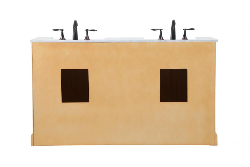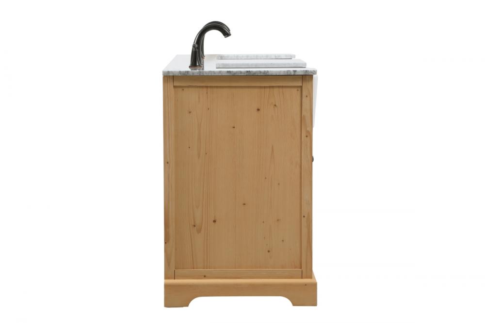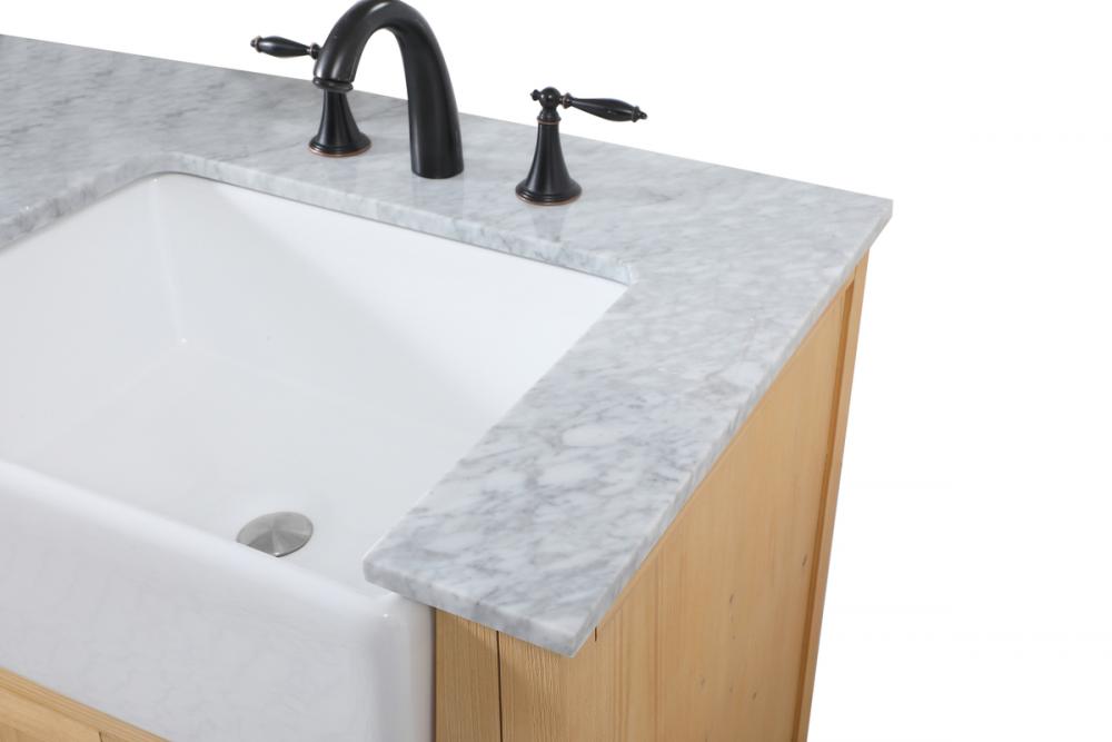 Make the most of your space with this farmhouse style bathroom vanity. Complements well with its beautiful finish, carrara white marble countertop, and the contemporary slender handle bar that sits on the functional drawers with soft closing mechanism, allowing you to store an assortment of bathroom essentials. The lower shelf makes it the perfect space to hold new towels for your guests. This stylish vanity ensures both form and function in your bathroom for you and your guests.