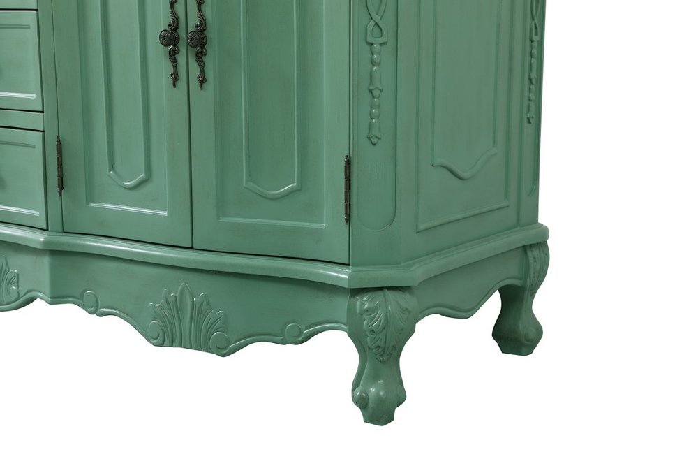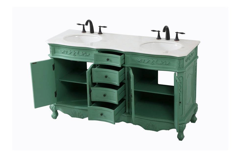 Create a refined and relaxing bath space with this traditional design vanity, presenting its ornate lines. This vanity, crafted of solid poplar wood and engineered wood panels, provides ample storage within its soft-close cabinet door, accentuated with metal hardware. Rounding out the design is an off-white marble with some brown veining in the stone. Comes with a white porcelain under-mount oval sink. Ships fully assembled.