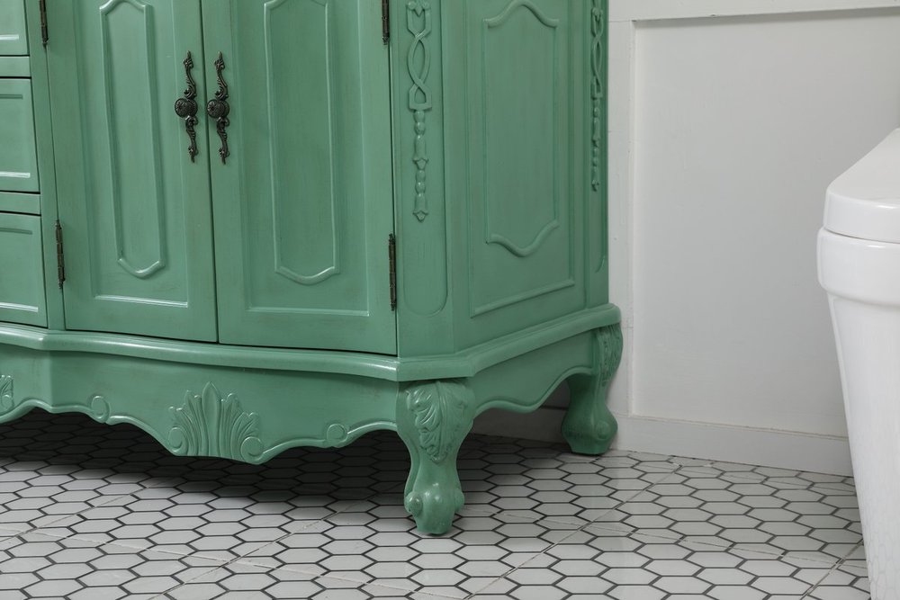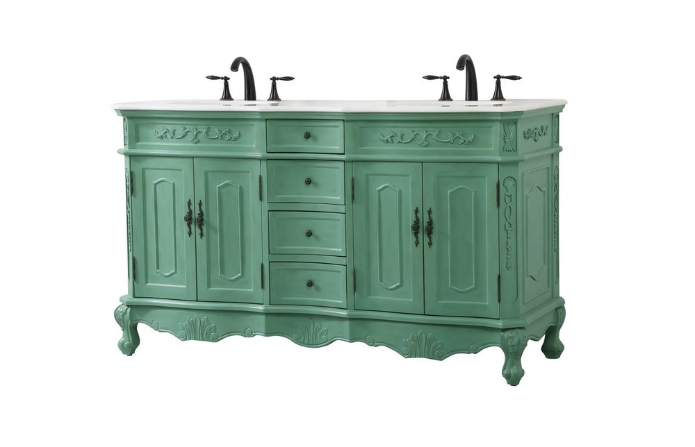 Comes with an off-white marble top with slight brown veining and bevel edge design, please note that due to the natural characteristics of the stone, the color and/or pattern of each countertop may vary from the pictures.
