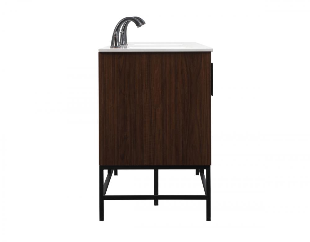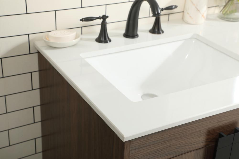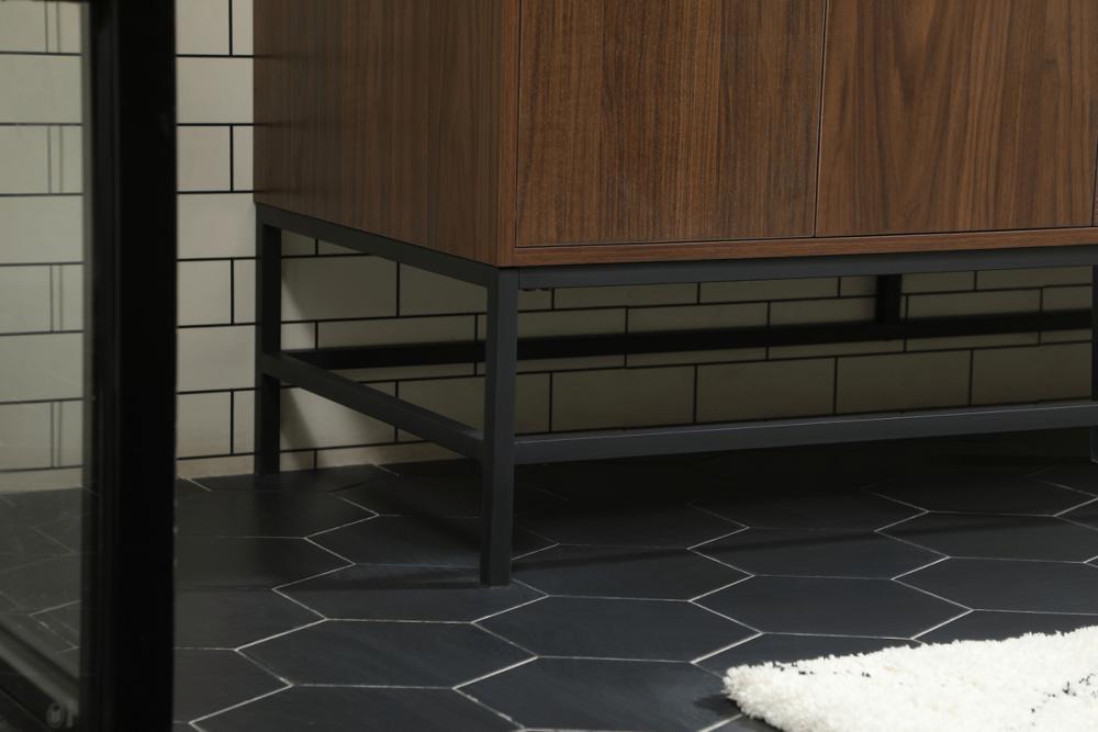 This vanity is a sleek-looking piece of bathroom furniture that is easy to incorporate into your design scheme. The cabinet features a smooth door panel with an oversized steel handle and soft close hinges provide ample room for accessories. Constructed of engineered wood, the powder-coated metal rod legs are an urban industrial look that we love. Minor assembly of the metal legs needed to get this vanity up and running.