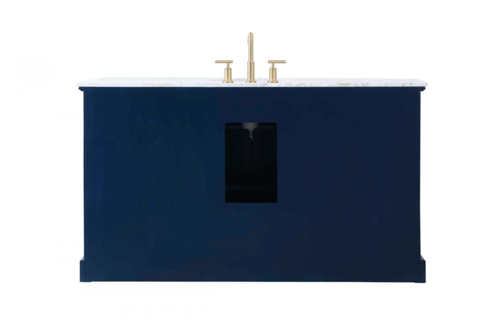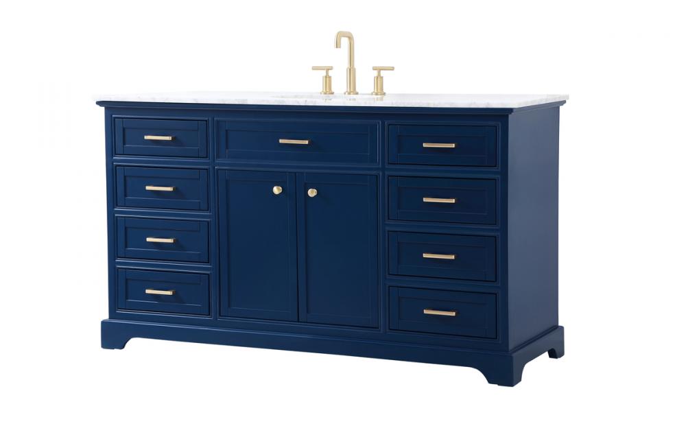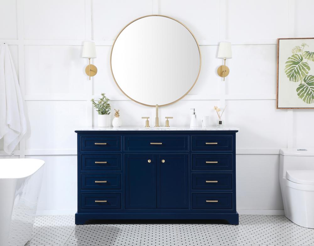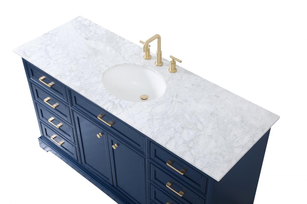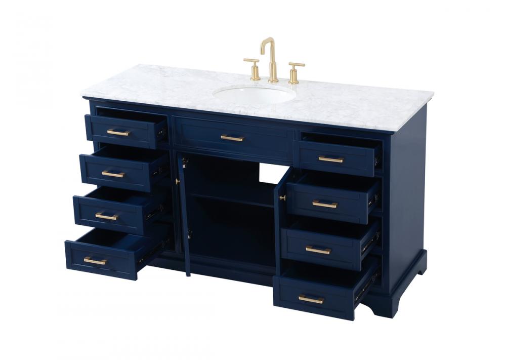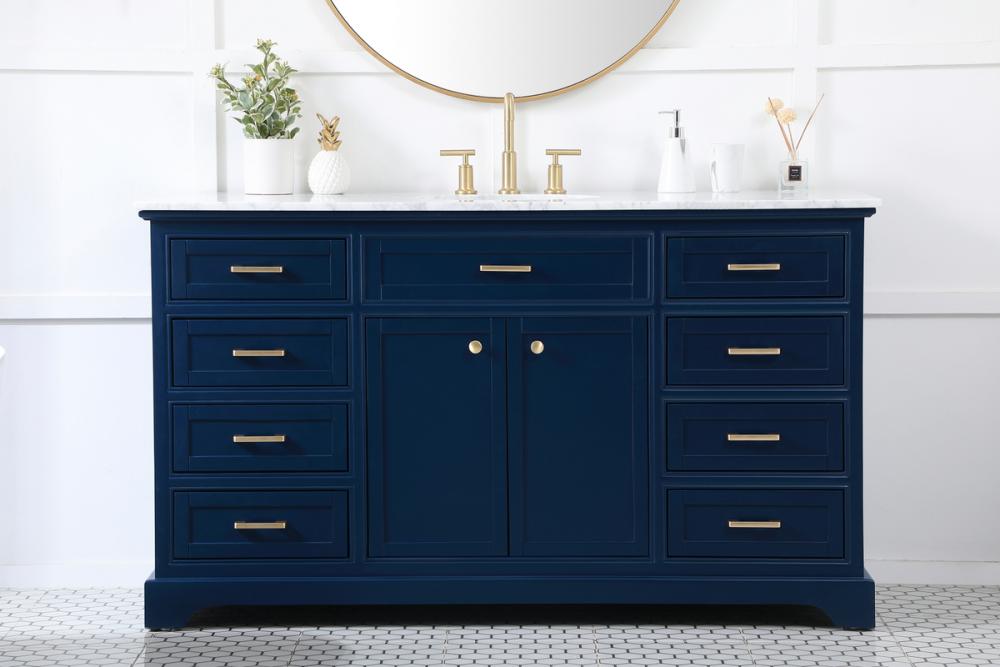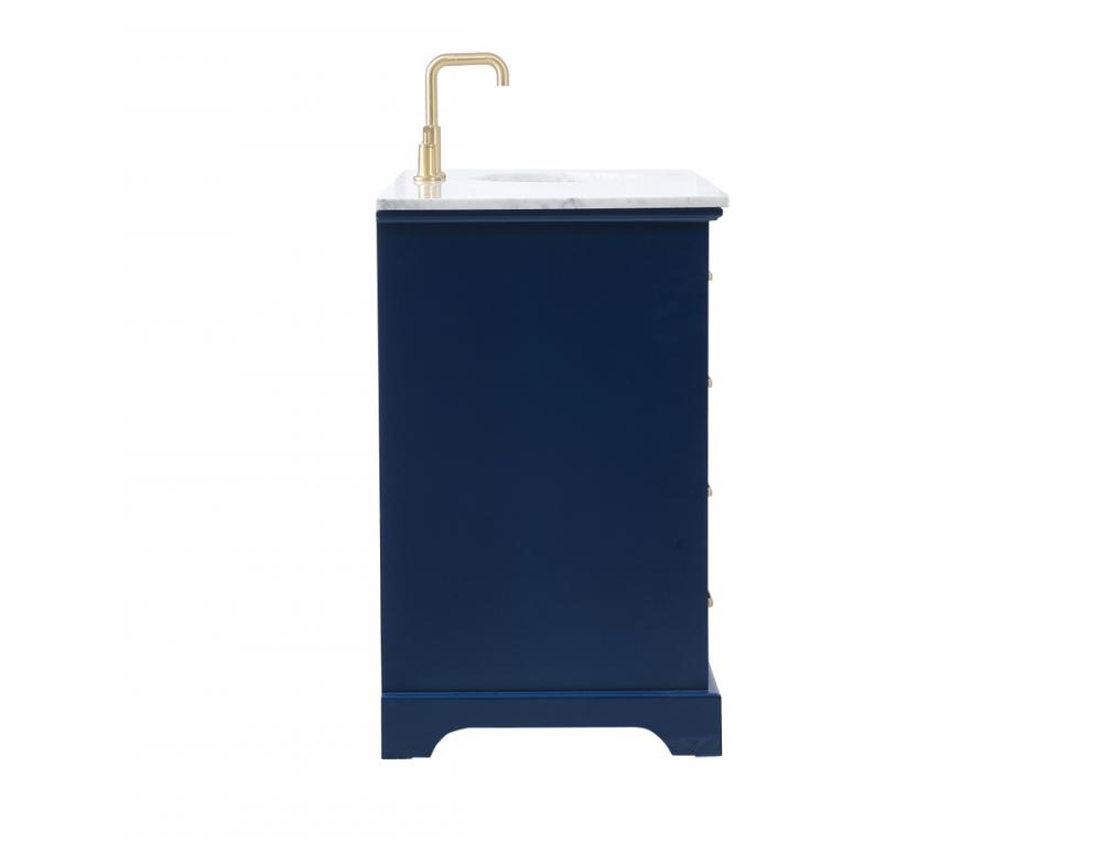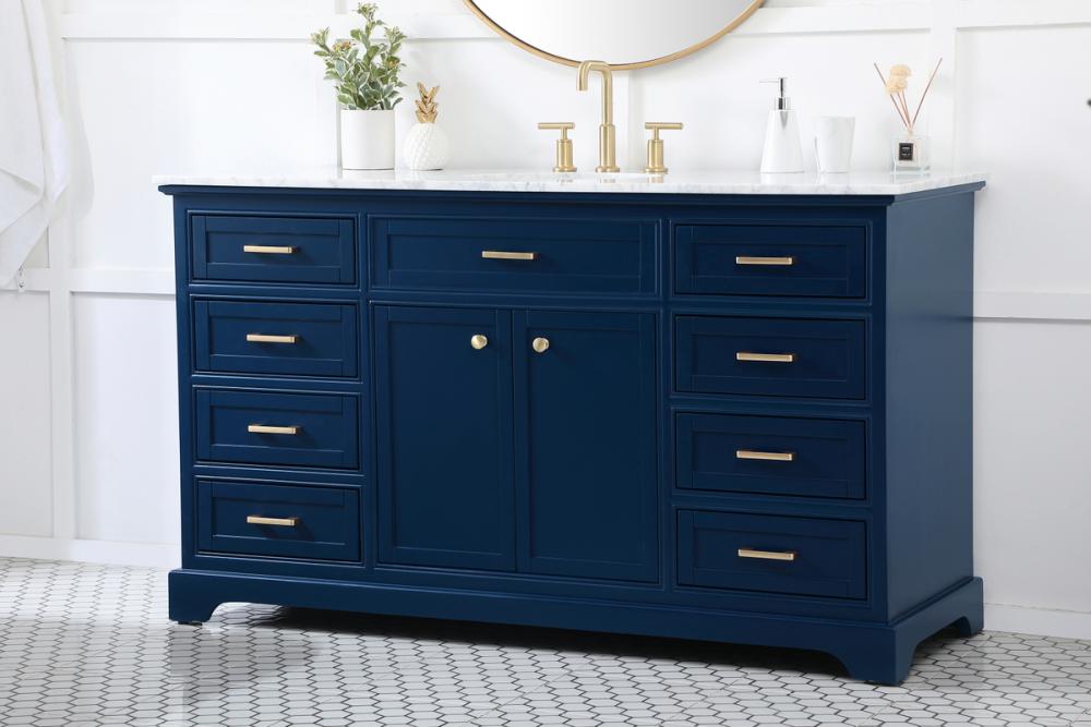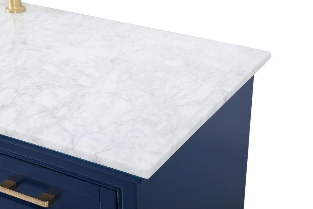 Clean lines and classic form can truly add a fresh look to your bathroom or powder room. This vanity, complemented by round hardware, will surely charm you with its confident style and subtle charisma. This vanity can store all of your bathroom toiletries, from extra towels to make up essentials. The vanity is crowned with carrara white marble and includes a porcelain undermount sink--adding both function and form that will truly amaze.