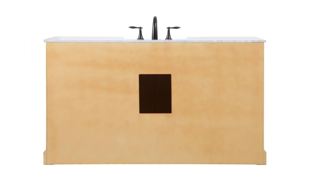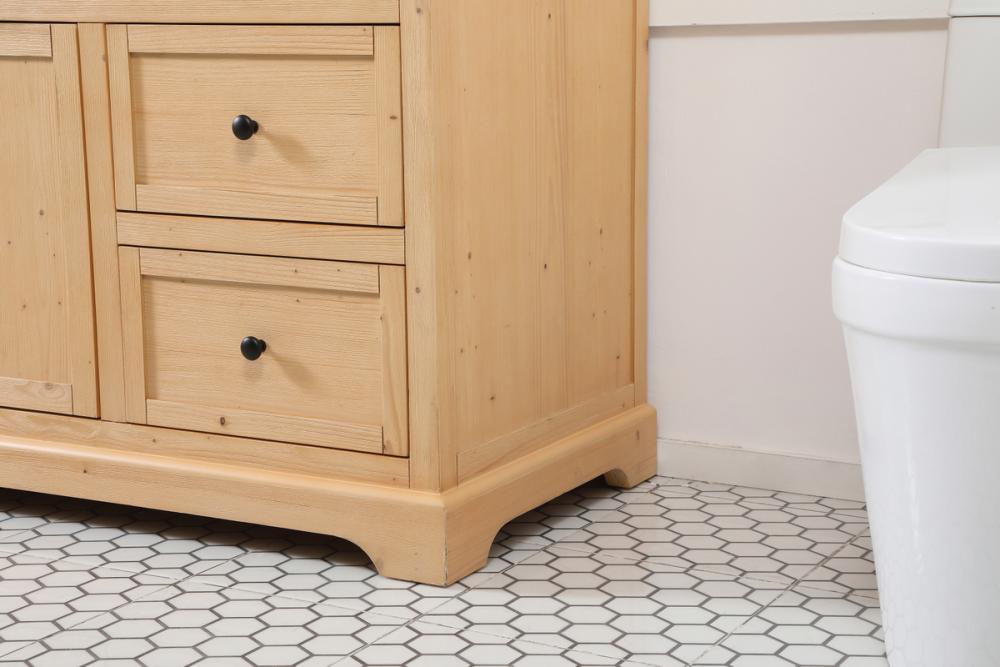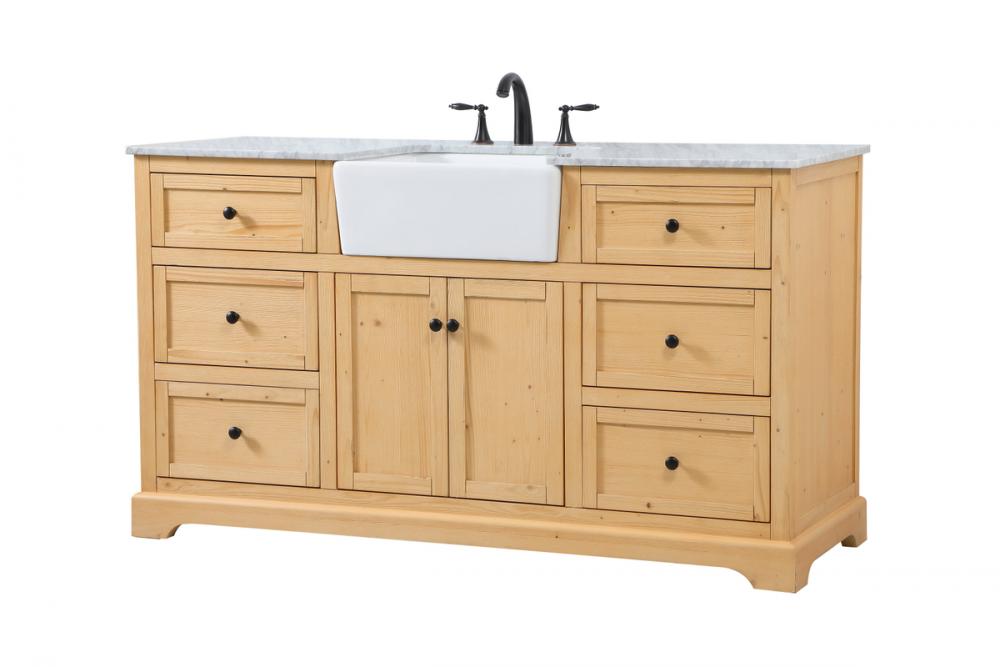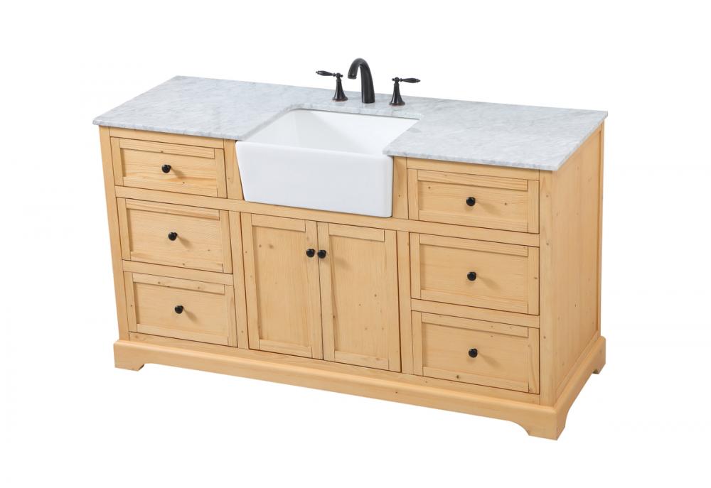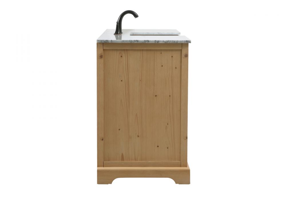 Make the most of your space with this farmhouse style bathroom vanity. Complements well with its beautiful finish, carrara white marble countertop, and the contemporary slender handle bar that sits on the functional drawers with soft closing mechanism, allowing you to store an assortment of bathroom essentials. The lower shelf makes it the perfect space to hold new towels for your guests. This stylish vanity ensures both form and function in your bathroom for you and your guests.