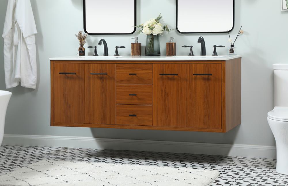 Vanity can be wall mounted without the solid wood legs or install as a freestanding unit