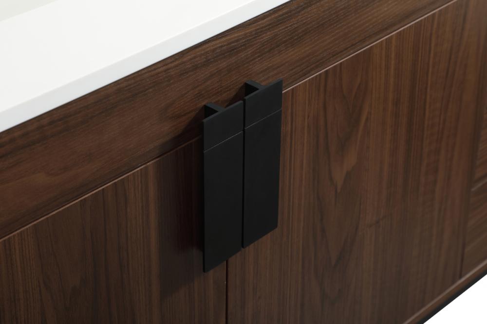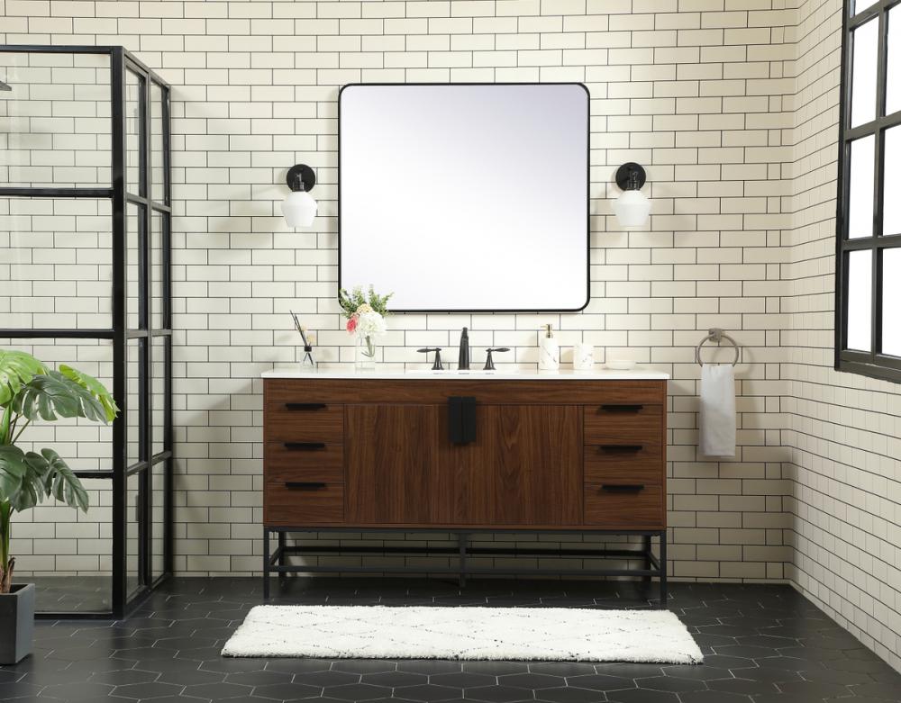 This vanity is a sleek-looking piece of bathroom furniture that is easy to incorporate into your design scheme. The cabinet features a smooth door panel with an oversized steel handle and soft close hinges provide ample room for accessories. Constructed of engineered wood, the powder-coated metal rod legs are an urban industrial look that we love. Minor assembly of the metal legs needed to get this vanity up and running.
