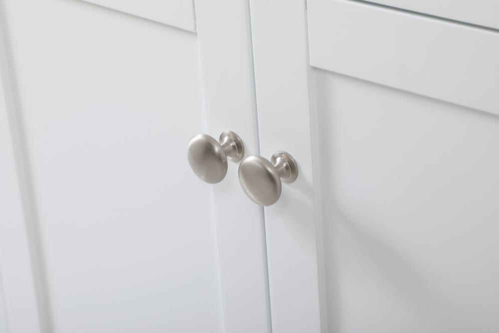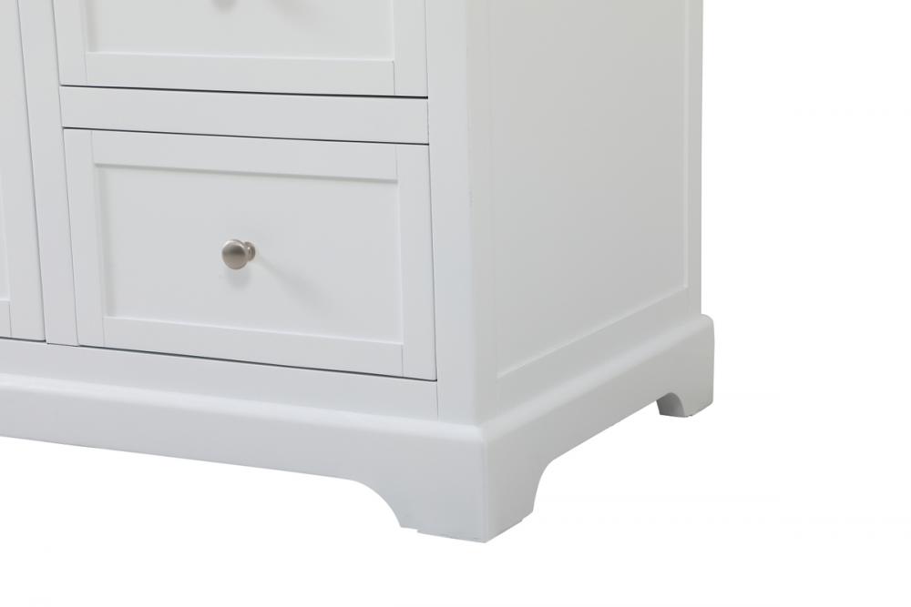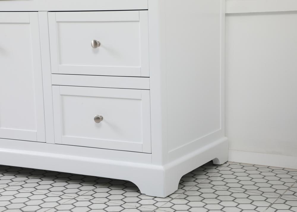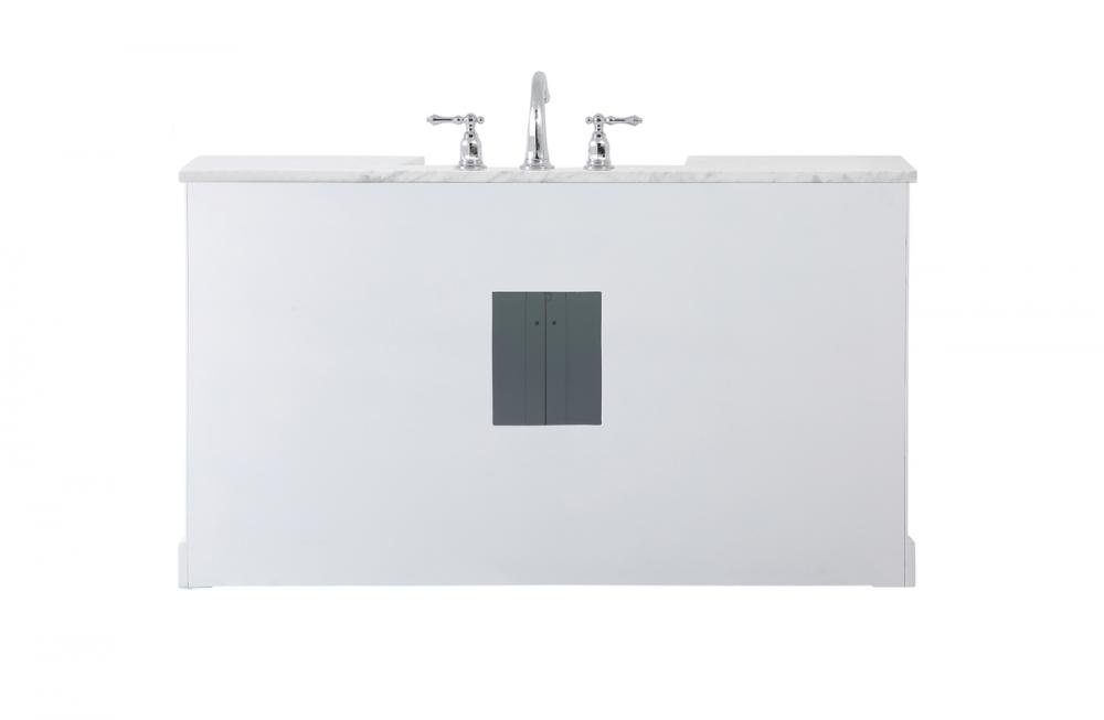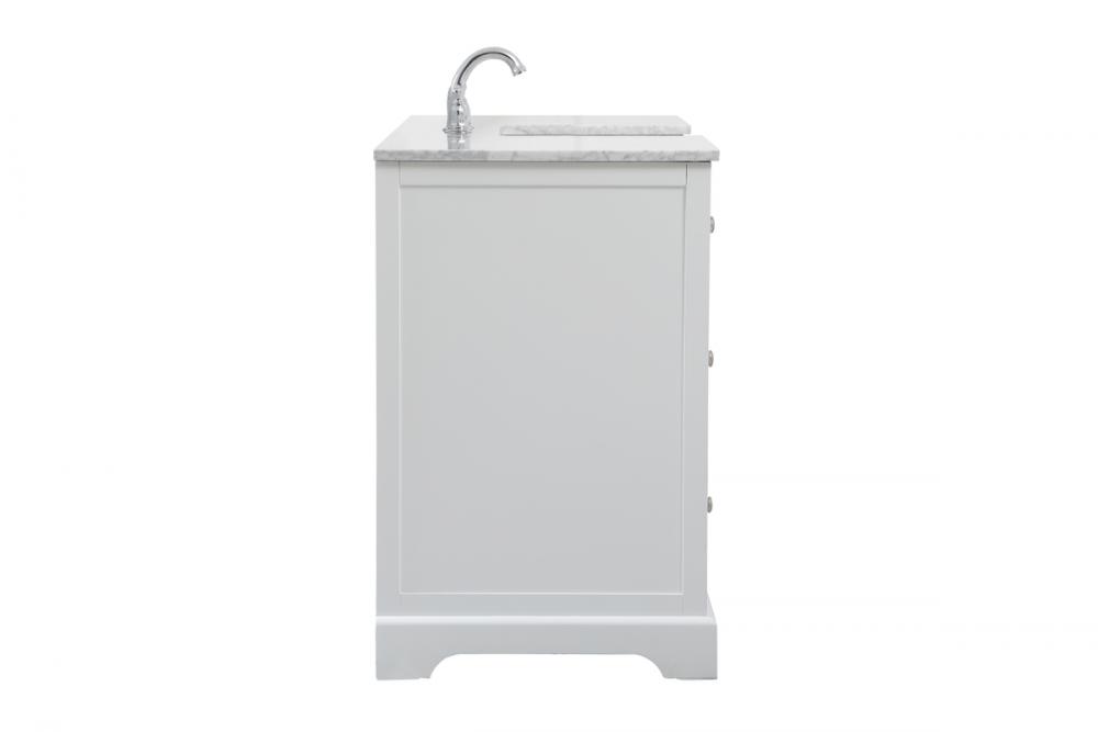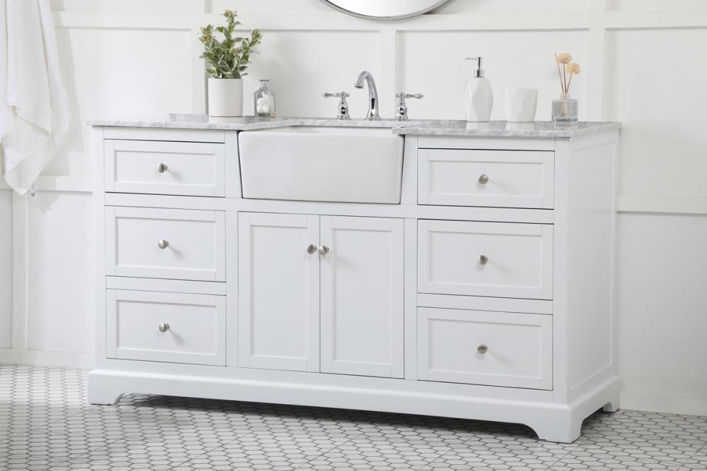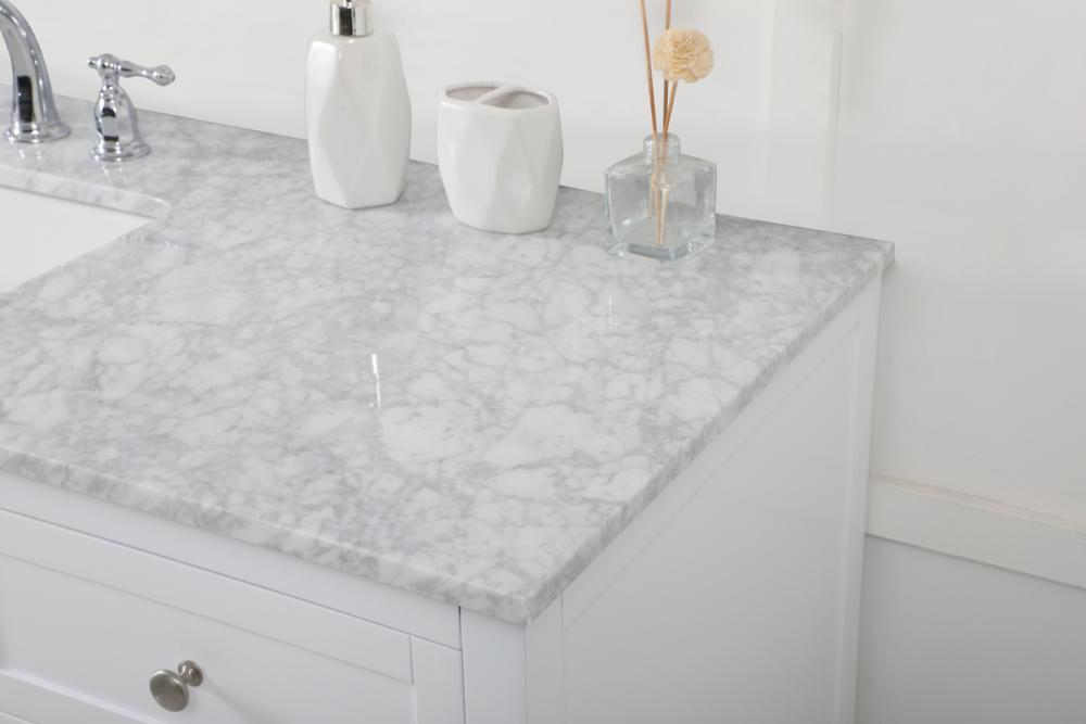 Make the most of your space with this farmhouse style bathroom vanity. Complements well with its beautiful finish, carrara white marble countertop, and the contemporary slender handle bar that sits on the functional drawers with soft closing mechanism, allowing you to store an assortment of bathroom essentials. The lower shelf makes it the perfect space to hold new towels for your guests. This stylish vanity ensures both form and function in your bathroom for you and your guests.