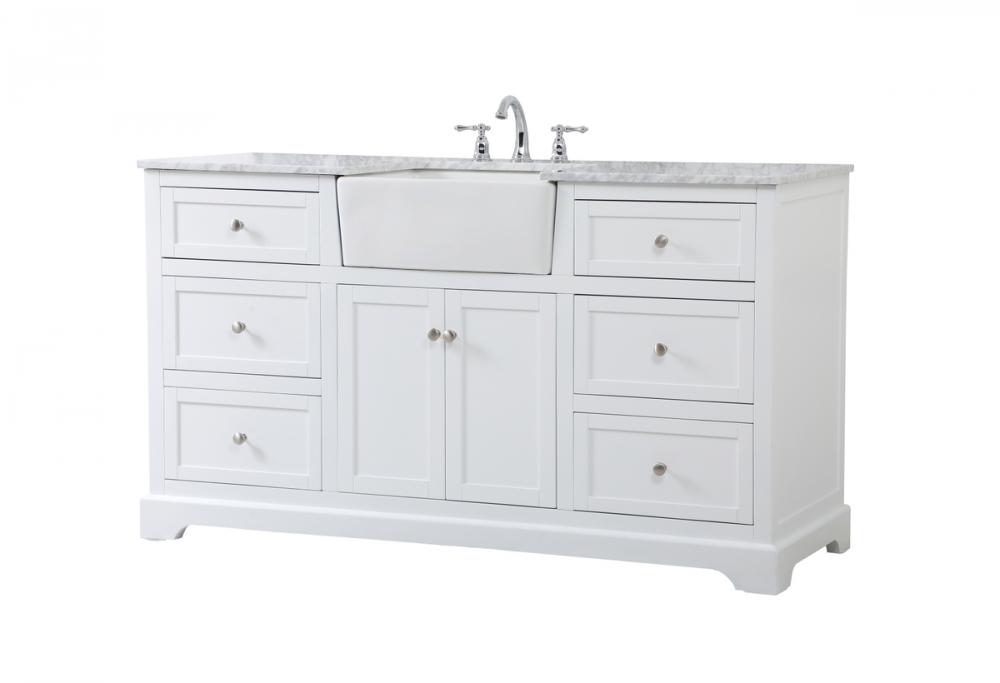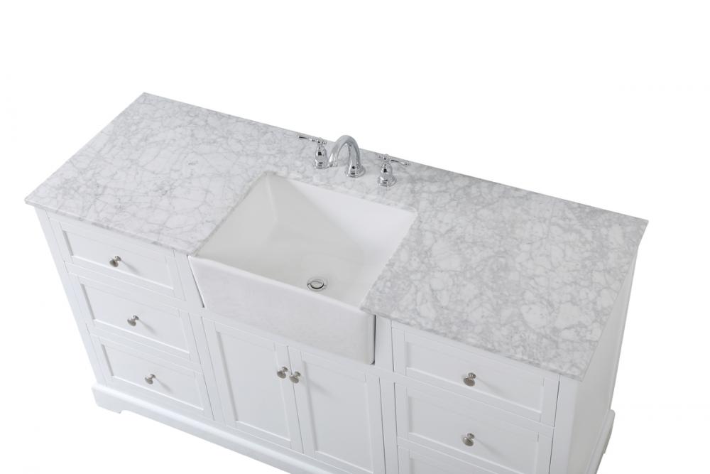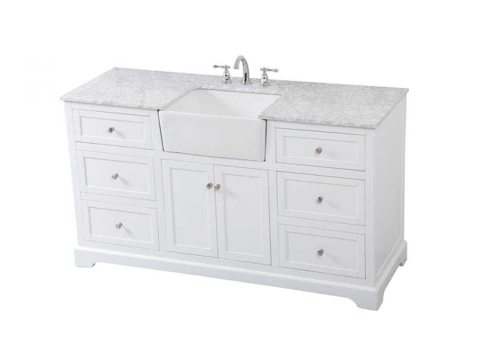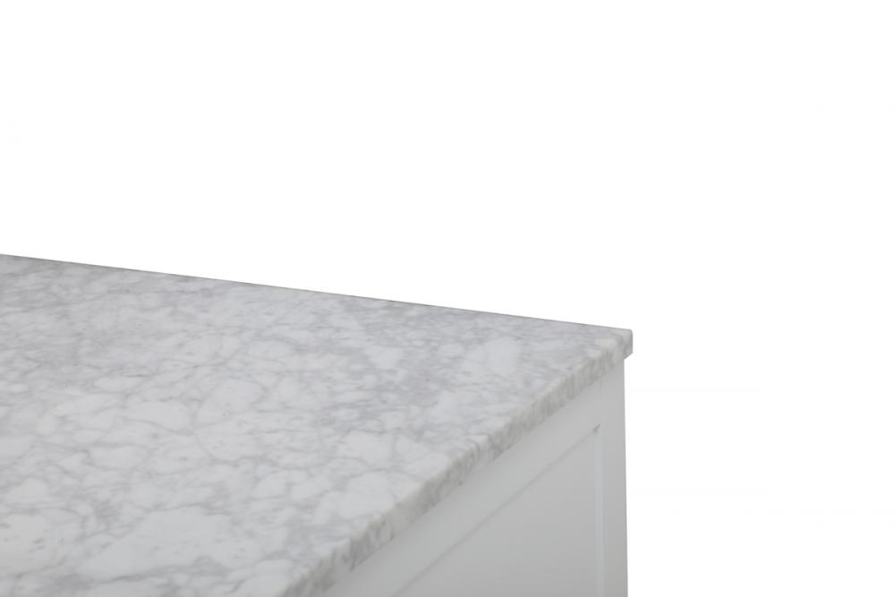 Comes with an apron porcelain sink and durable marble stone top in carrara white finish