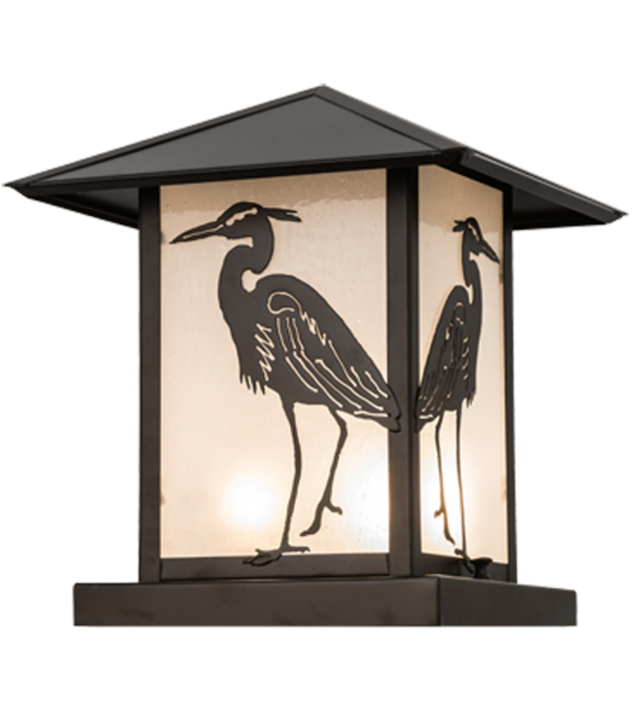 A Moose wanders by a lake in the woods on this nature inspired oblong pendant. The fixture is finished in Antique Copper; has Silver mica panels; and is handcrafted in the USA by Meyda artisans.