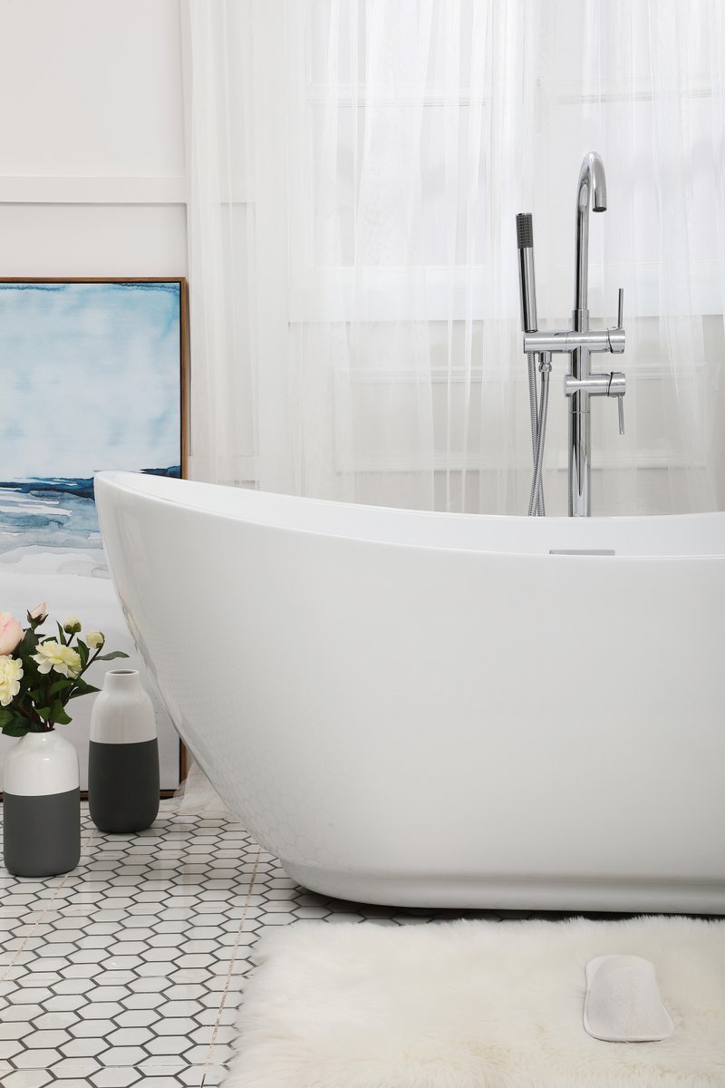The curvature of this 62" slipper style bath tub allows for comfortable seating--and wouldn't you want to be as comfortable as possible while having a relaxing soak? The glossy white finish adds peaceful modernity to any bathroom--discard all your worries and bathe in elegance.