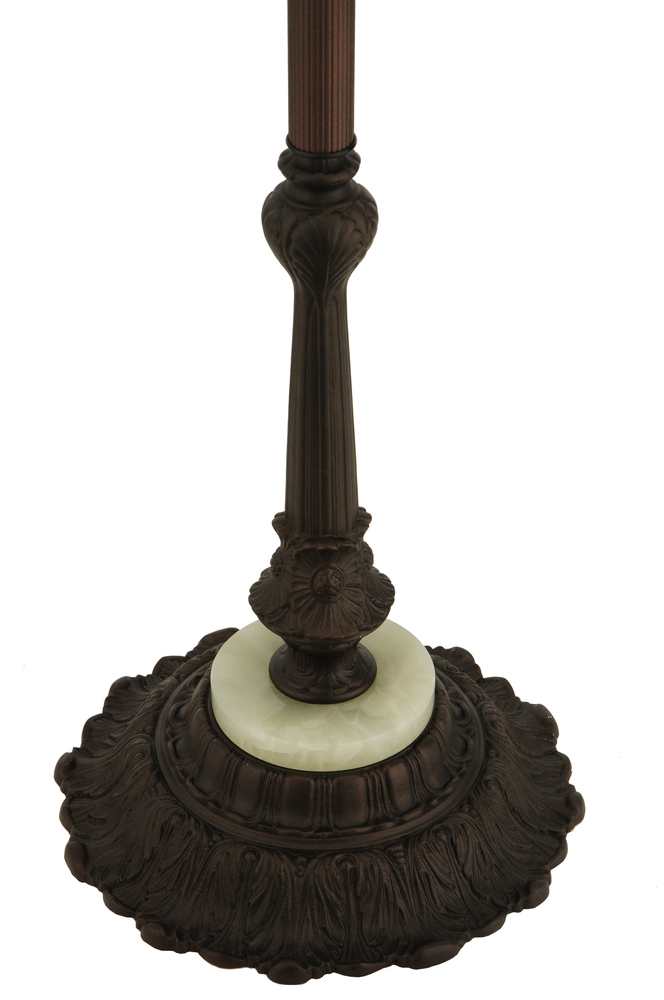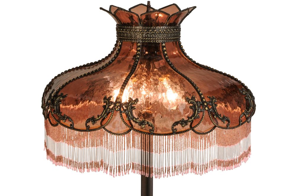 Embrace the timeless look of this classic art glass design. The Elizabeth floor lamp features a hand-curved Mauve Waterglass shade with color coordinated glass beaded fringe that is enhanced with Brass filigree and a base hand finished in Mahogany Bronze. The Quality Bent Glass division of Meyda Lighting is over 100 years in the making and revolutionized manufacturing for high temperature glass forming with custom production capacity ovens and kilns. Customized bent glass lamps and fixtures are domestically produced with high-fired glass designs and metal finishes in our manufacturing facility in Yorkville; NY and still using tools and methods from the days when we supplied Tiffany Studios. UL and cUL listed for dry locations.