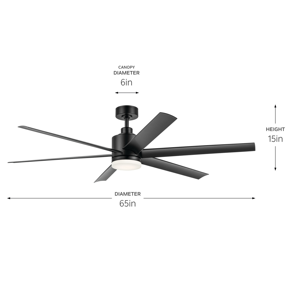 65 Inch Loa Ceiling Fan with Satin Etch Cased Opal Glass in Satin Black with Black Blades