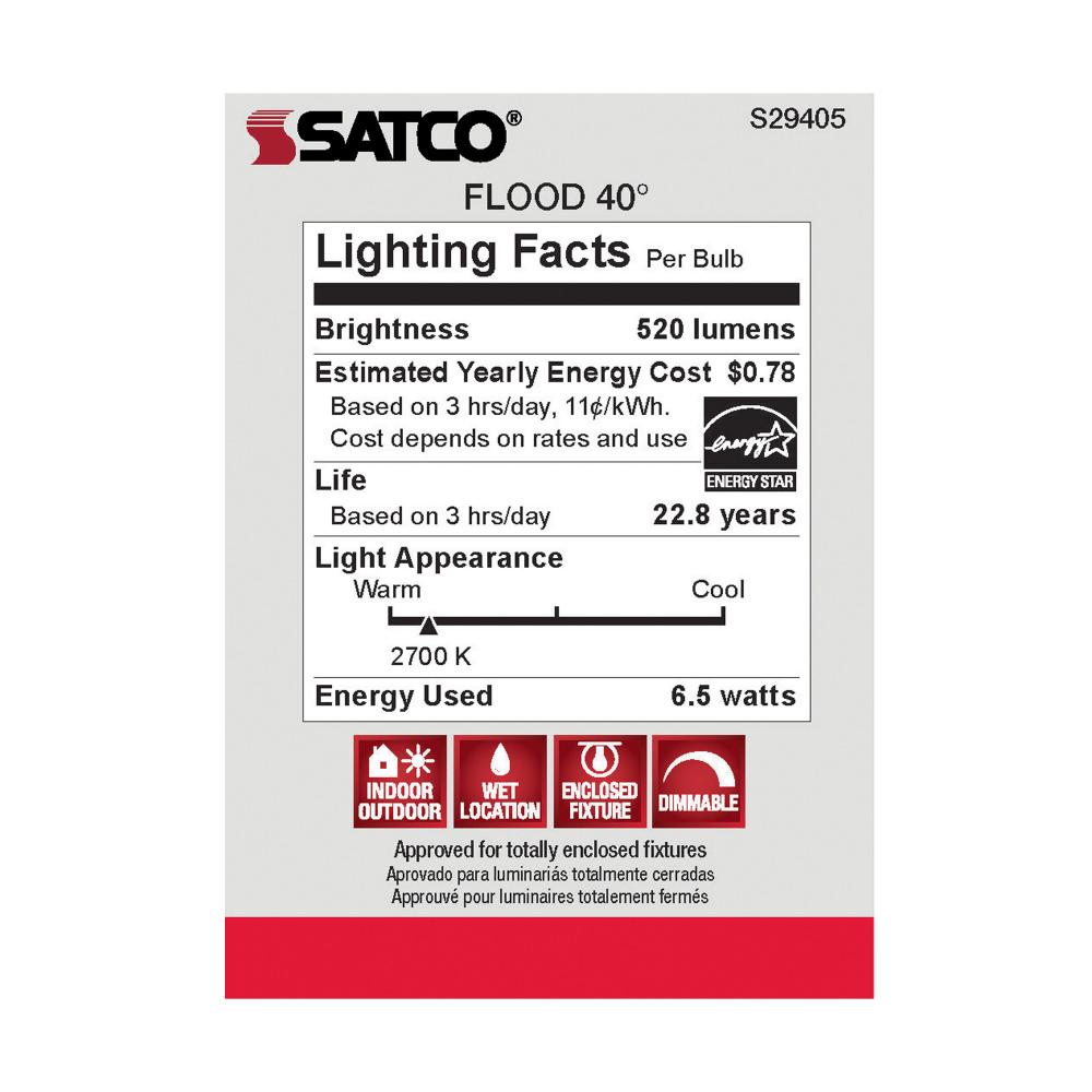 Satco's S29405 LED 6.5-watt, PAR20 lamp maintains the familiar look of the Halogen PAR and Gen1 LED lamps they replace; but at 90 CRI and a higher lumens per watt ratio, it delivers superior light and improved efficiency. Designed for use in track, rec