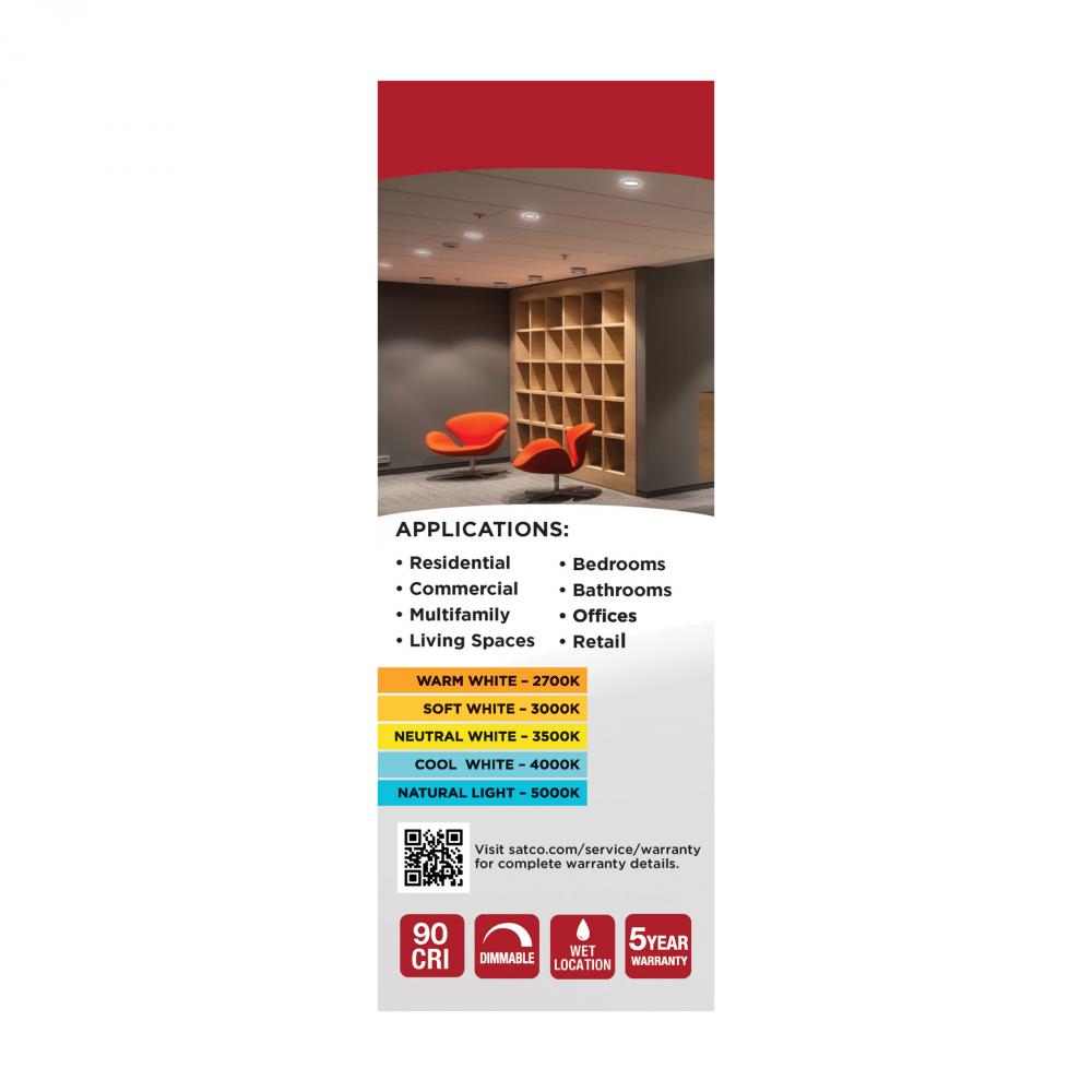 SATCO NUVO's LED Retrofit Downlights are the easy way to convert traditional recessed lighting to LED. Offered in 4-inch and 5/6-inch models, these fixtures are sized for, and come ready with, an E26 base adapter for instant illumination when installed