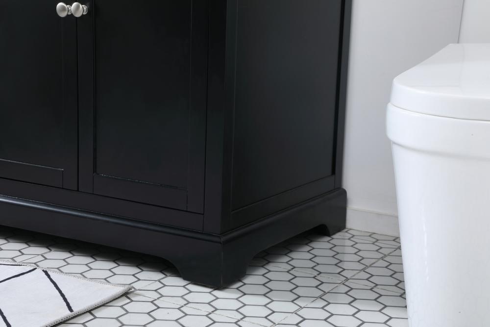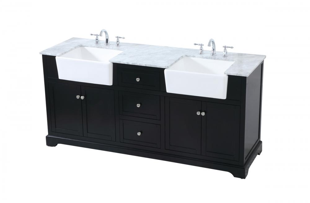 Make the most of your space with this farmhouse style bathroom vanity. Complements well with its beautiful finish, carrara white marble countertop, and the contemporary slender handle bar that sits on the functional drawers with soft closing mechanism, allowing you to store an assortment of bathroom essentials. This stylish vanity ensures both form and function in your bathroom for you and your guests.