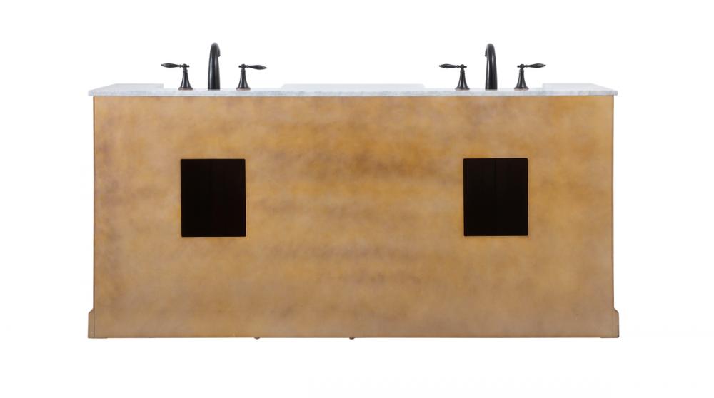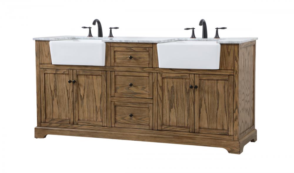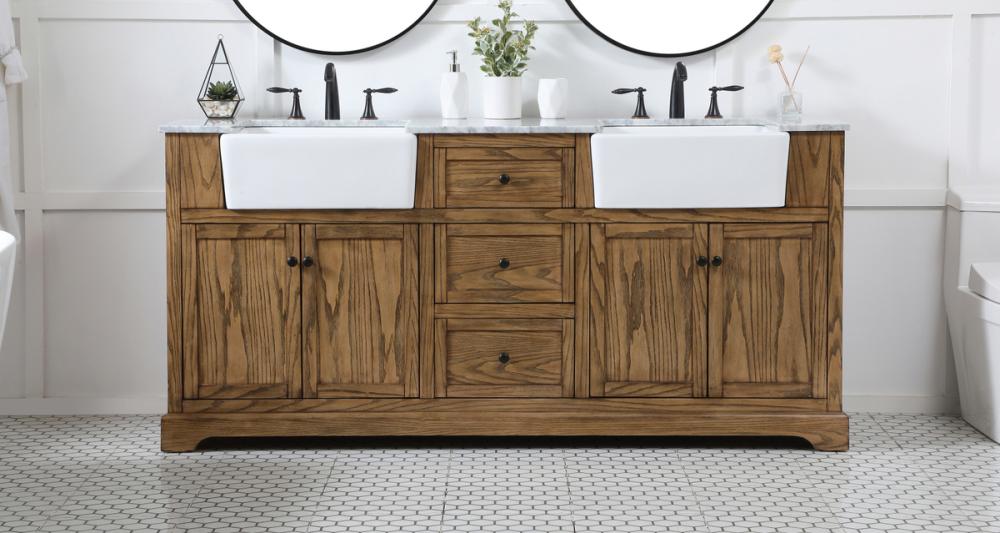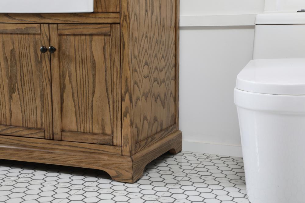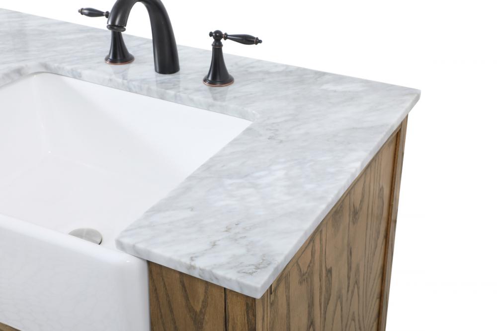 Make the most of your space with this farmhouse style bathroom vanity. Complements well with its beautiful finish, carrara white marble countertop, and the contemporary slender handle bar that sits on the functional drawers with soft closing mechanism, allowing you to store an assortment of bathroom essentials. The lower shelf makes it the perfect space to hold new towels for your guests. This stylish vanity ensures both form and function in your bathroom for you and your guests.