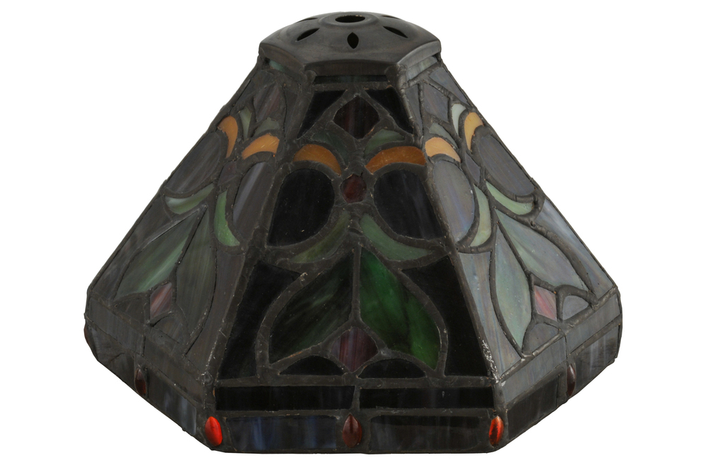 Beautiful stained glass created for a resplendent look best describes Middleton. Leafy Green Holly; Amber motifs with Ripe Red Berry glass accents and jewels highlight this decorative design on a Burgundy background. The art glass shade was created using the famous Meyda Tiffany copperfoil construction process. Pair with a base to create a stunning table or floor lamp; or match with hardware to build a beautiful ceiling or wall fixture. The Middleton Shade is included in our American designed; handcrafted Stained Glass Lighting Collection. Each shade is a unique work of art with color variations based on natural ingredients inherent in the glass. Contact us if color matching is critical when ordering multiple items.