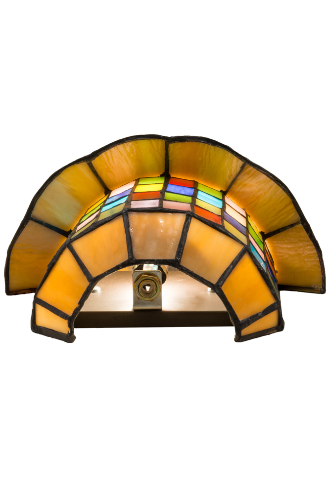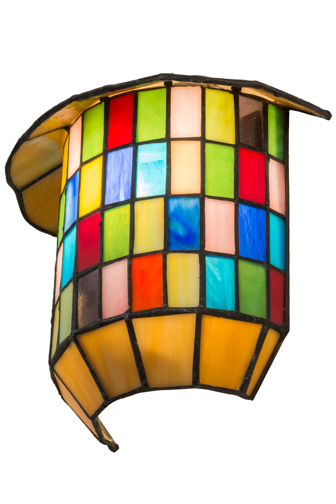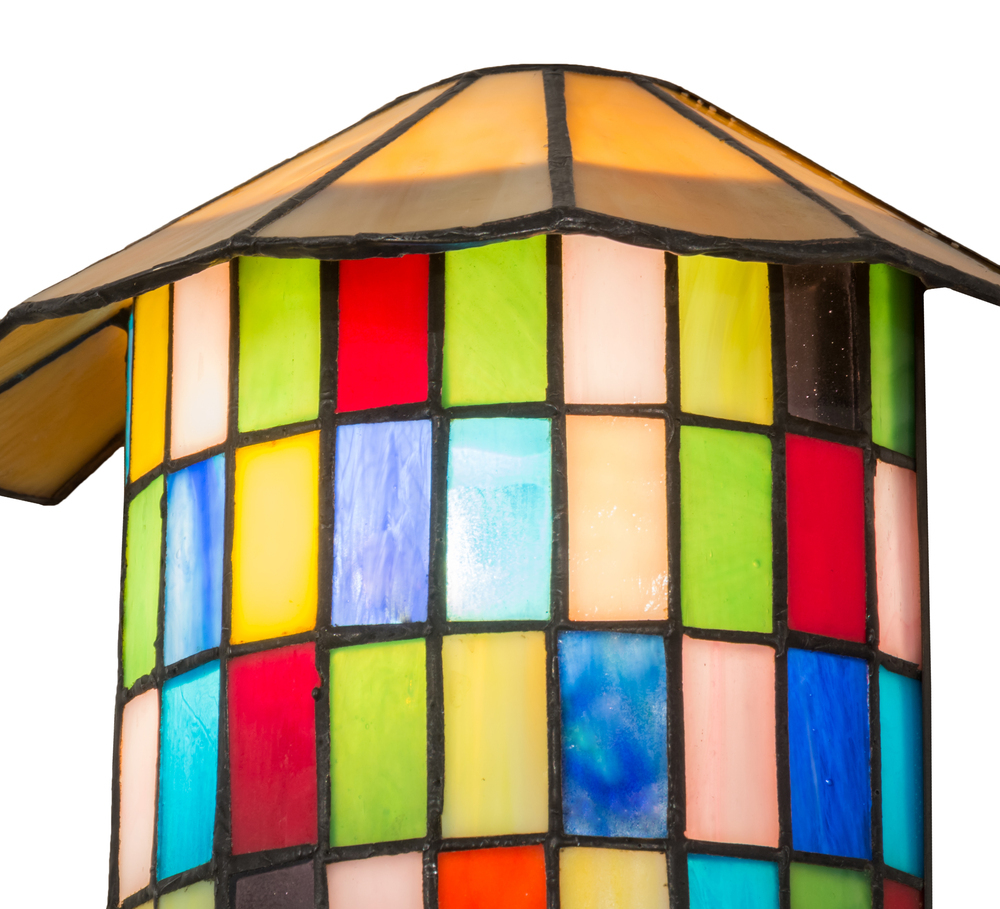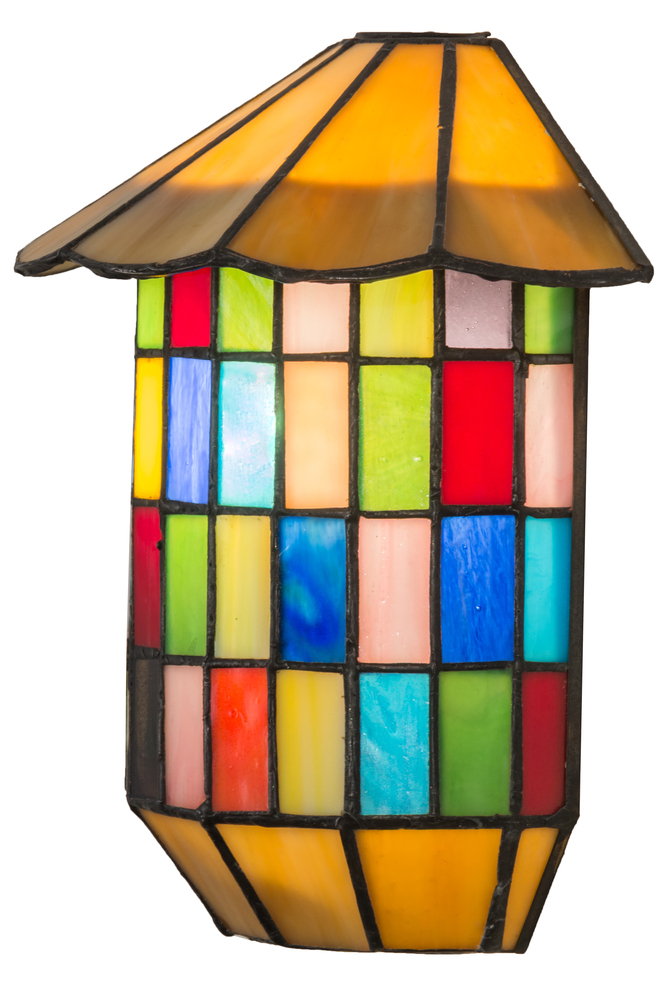 This fixture was originally created by Meyda Co-Founder Meyer Cohen on the front porch of his summer studio in Old Forge in Upstate New York. The Meyer Lantern was designed with a Honey art glass roof and bottom; with a cornucopia of Blues; Greens; Yellows and Reds; in various stained glass tiles throughout the center. This sconce can be seen adorning camps and vacation homes throughout the Adirondack Mountains. Options are available for both indoor and outdoor lighting applications; as well as custom sizes; colors; designs and dimmable energy efficient lamping options.