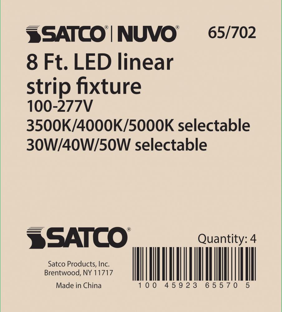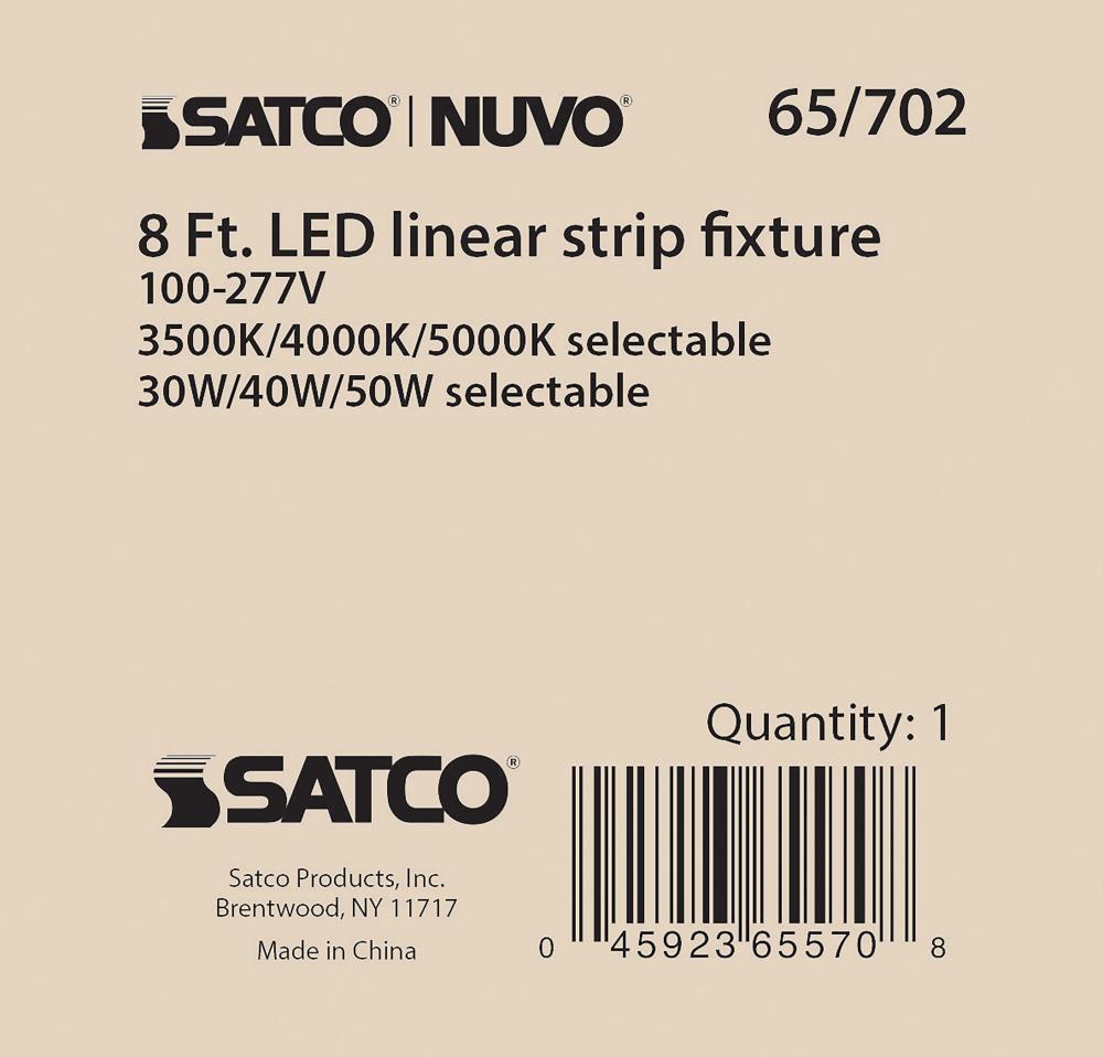 SATCO NUVO offers LED Linear Strip Fixtures in 2, 4, and 8-foot sizes, providing versatile lighting solutions for a range of applications. All fixtures are CCT selectable with 3500K, 4000K, and 5000K options, allowing users to adjust the color temperature