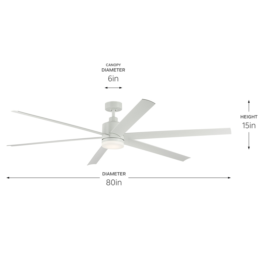 80 Inch Loa Ceiling Fan with Satin Etch Cased Opal Glass in Matte White with White Blades