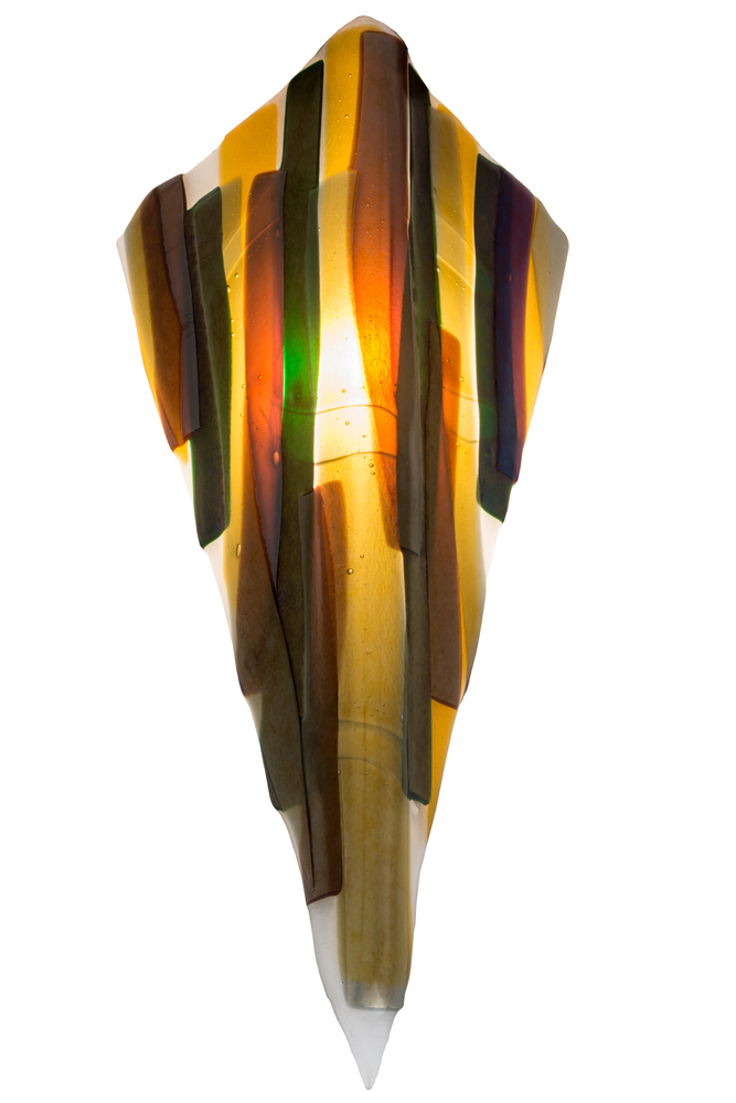 8"W Metro Fusion Penna Di Pavone Glass V Panel Shade