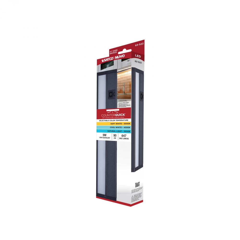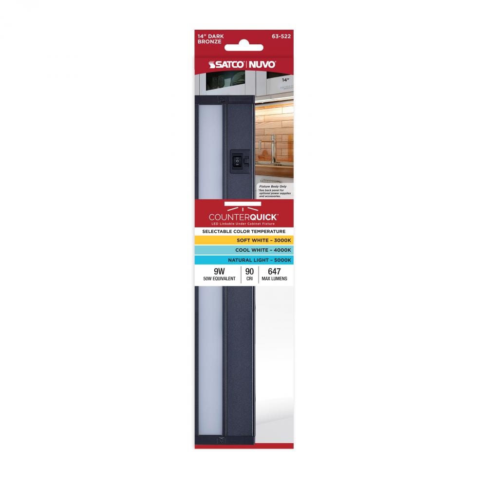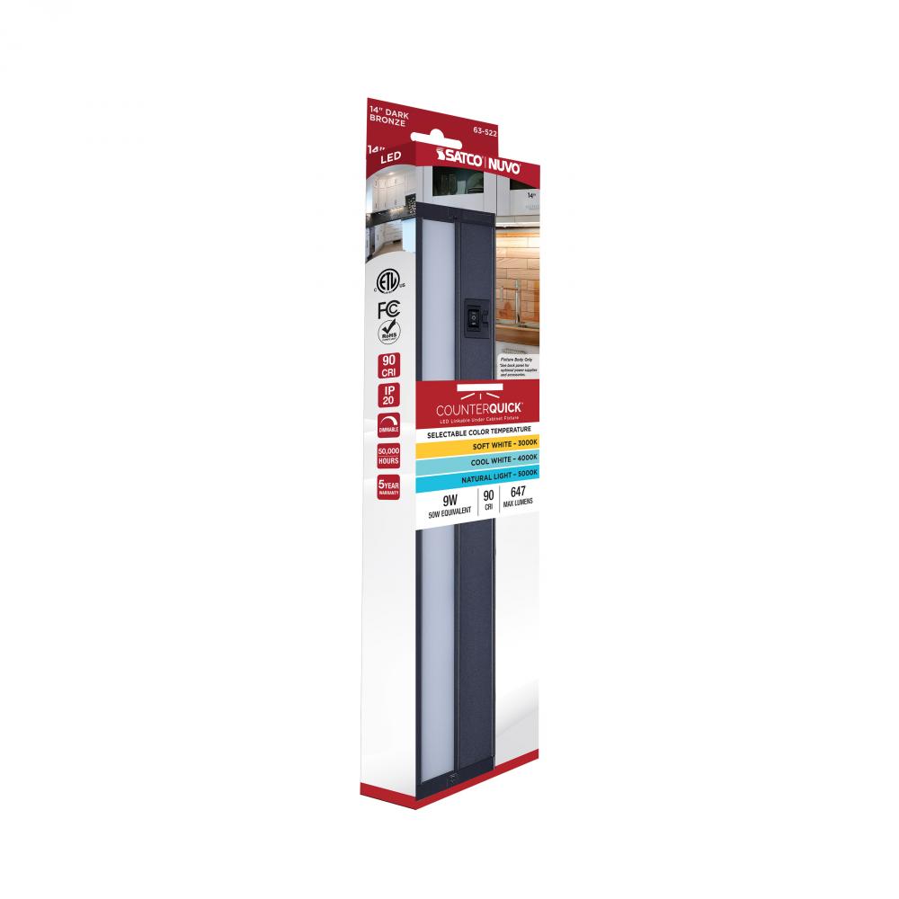 9 Watt 14-Inch LED Under Cabinet; 30K/40K/50K CCT Selectable; Dark Bronze; 120 Volt